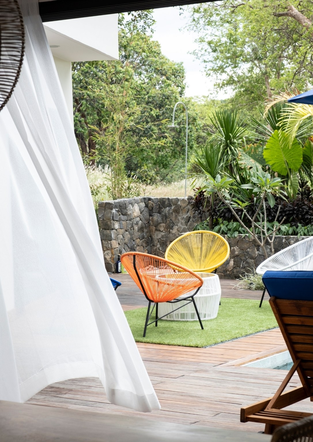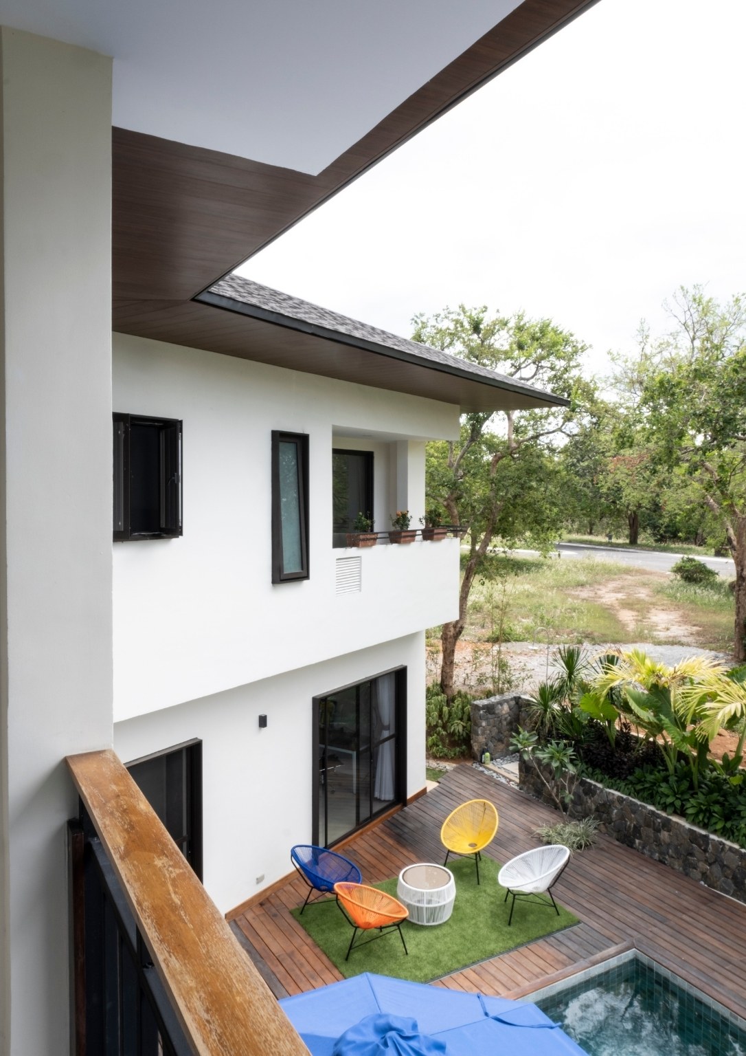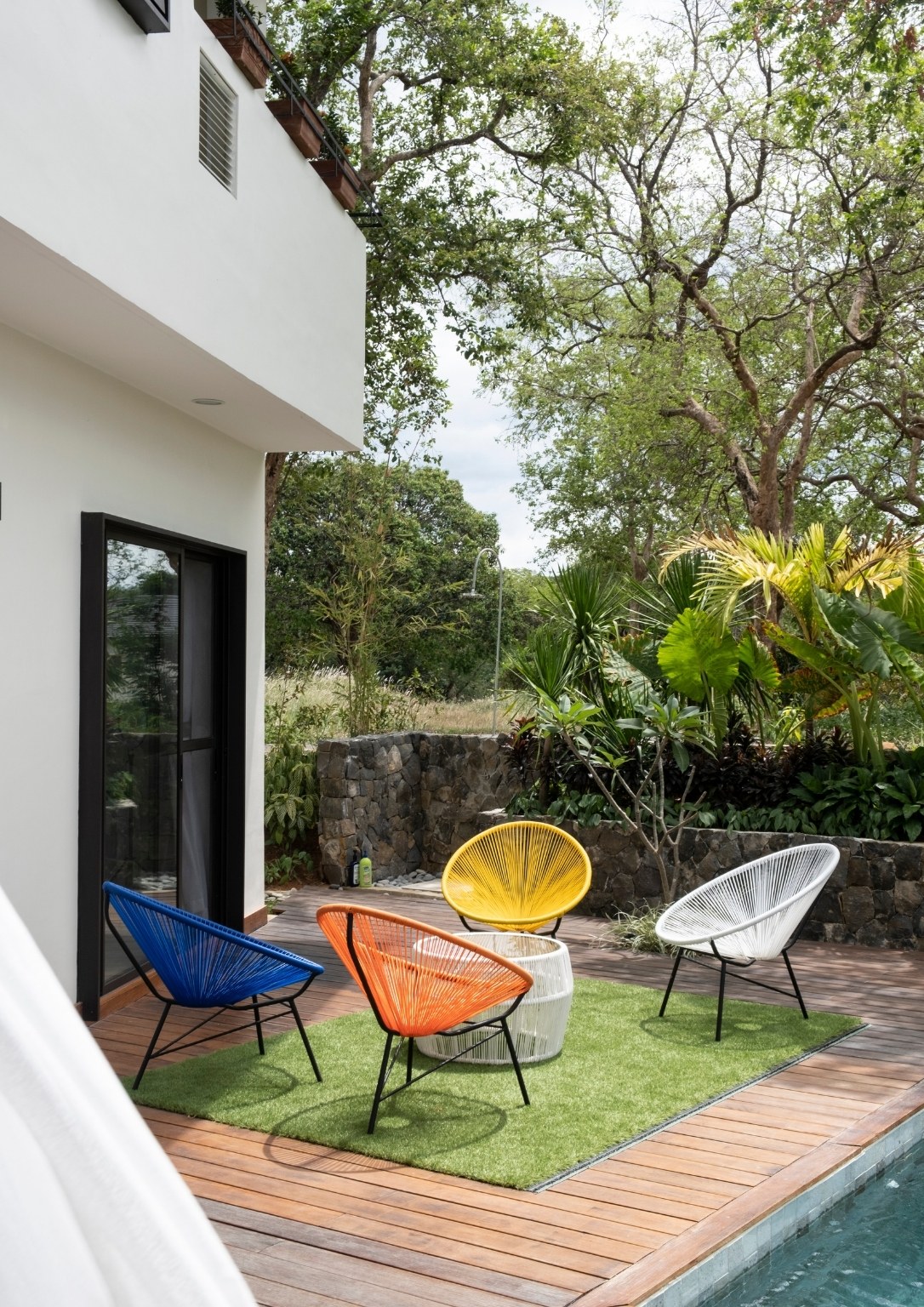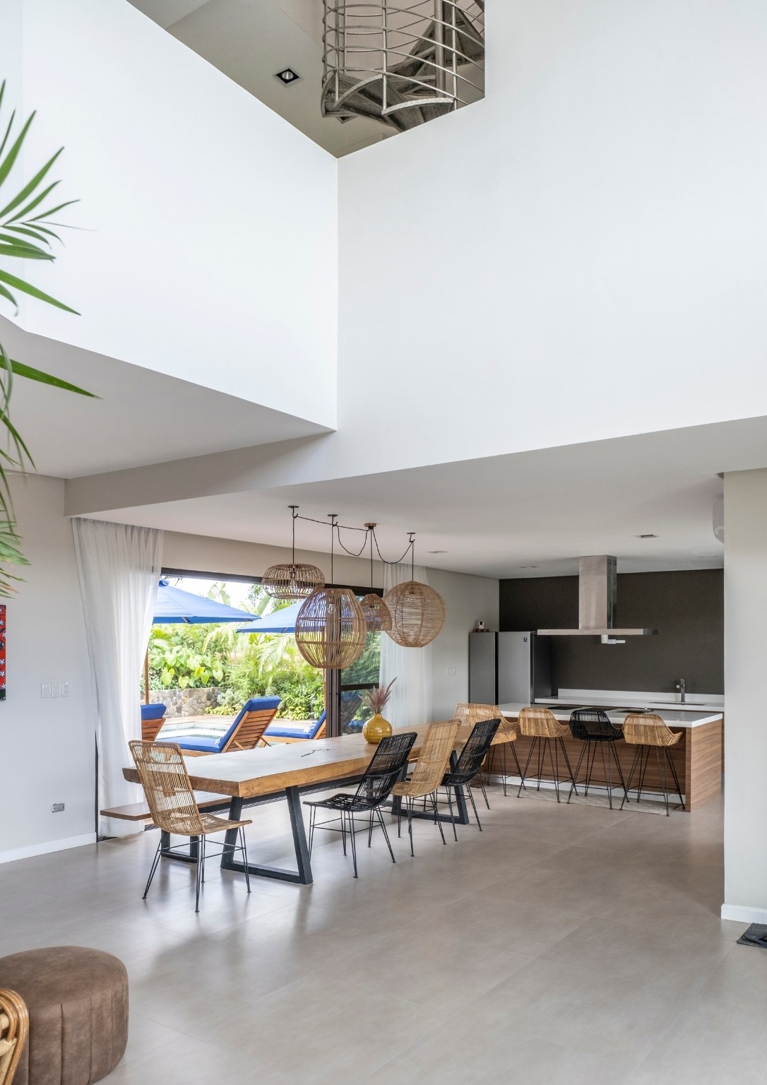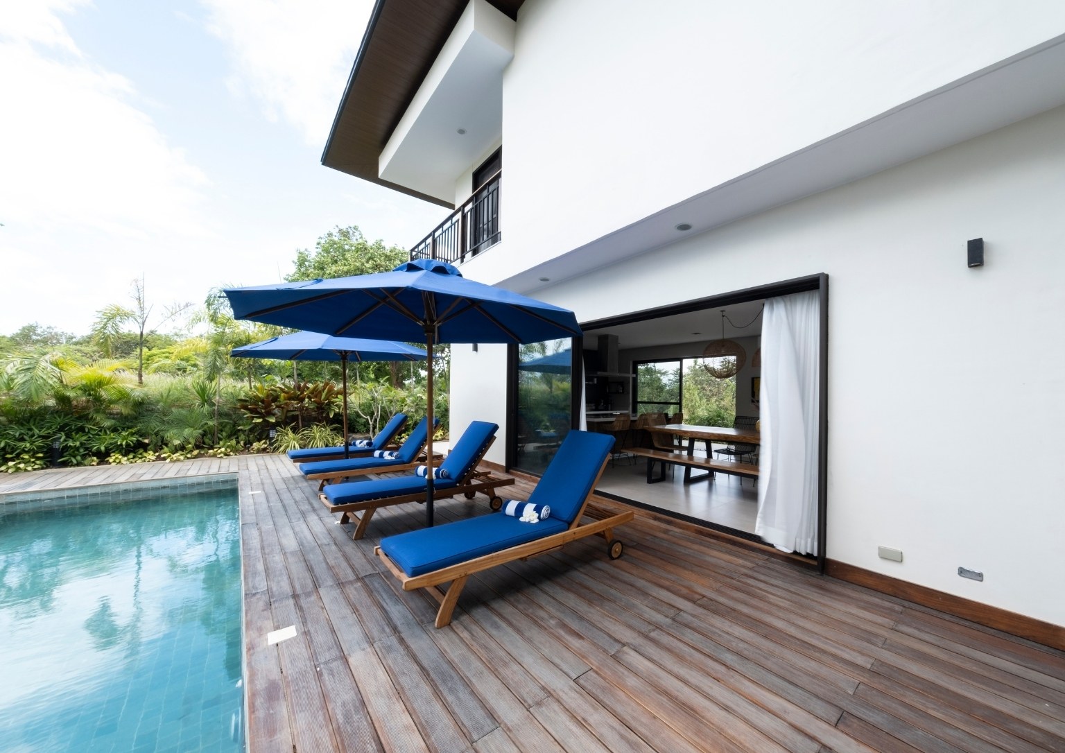 “Natural materials that connect the home to its surroundings play a key role in the design, and include Italian-inspired tiles, sustainable African wood for the pool deck, and Bali stones in a blue-green color for the pool tiles. Set amidst luxuriant tropical landscaping, Casa al Mare allows for an environment which re-establishes human connections with the locality while creating a unique close-to-nature guest experience,” Ar. Nati said of some of the design highlights that he envisioned for the weekend home.