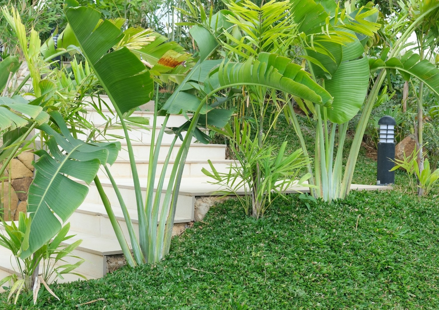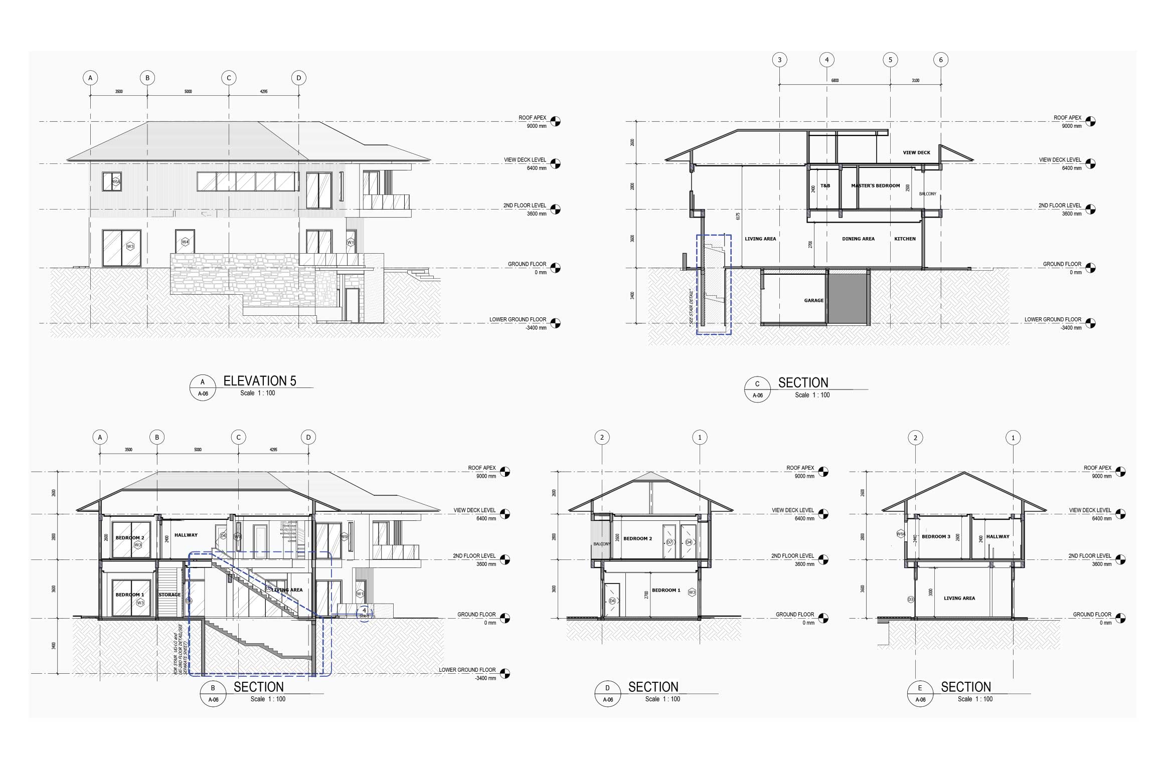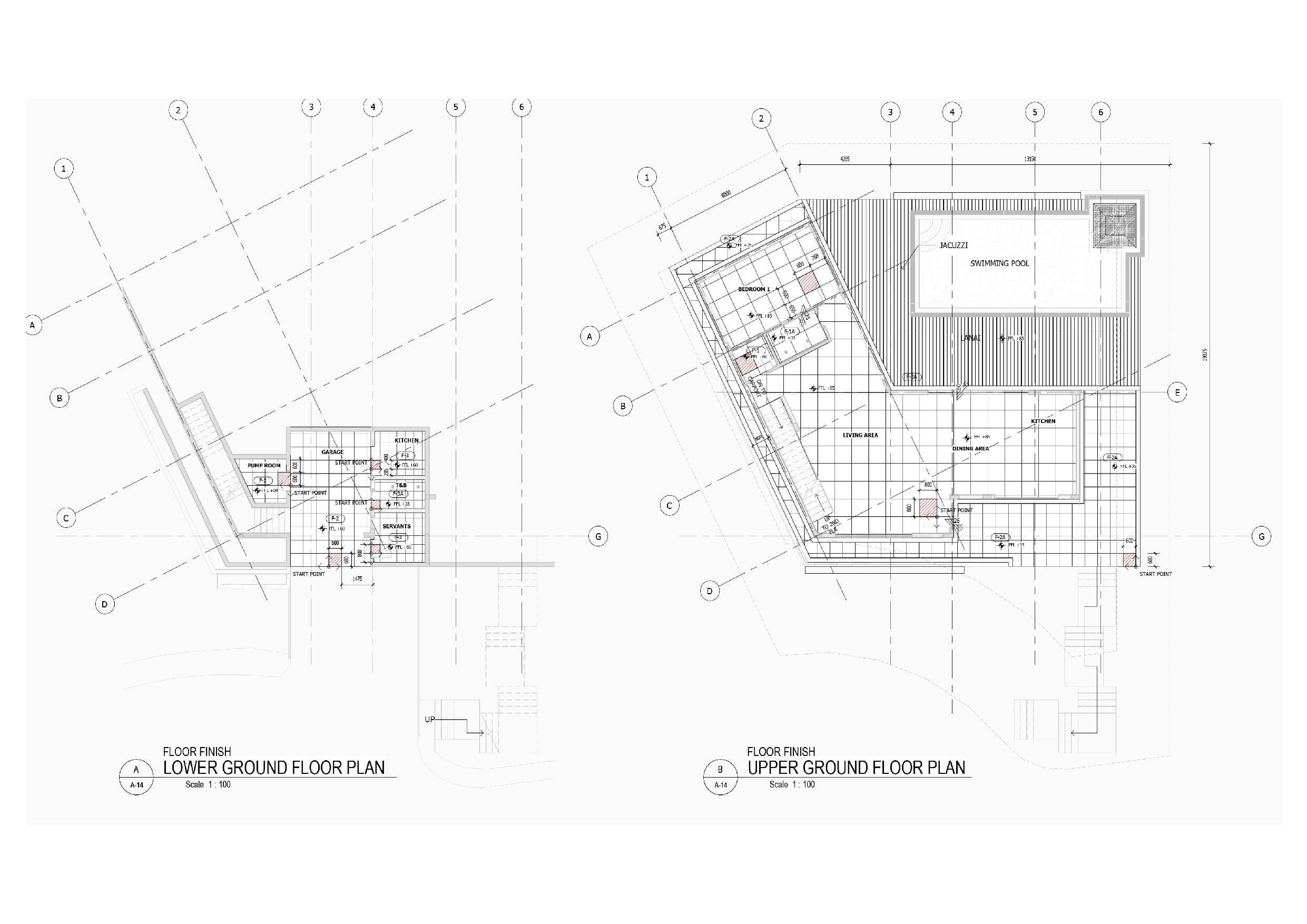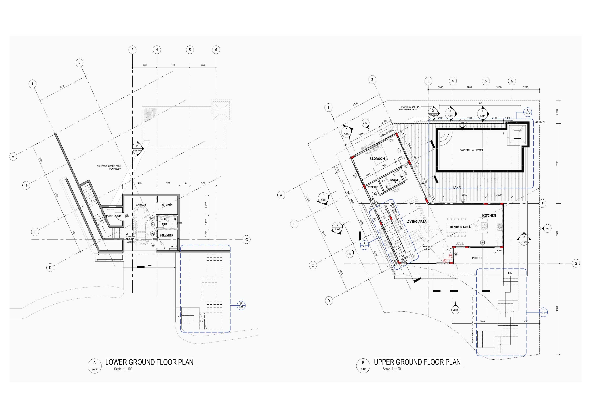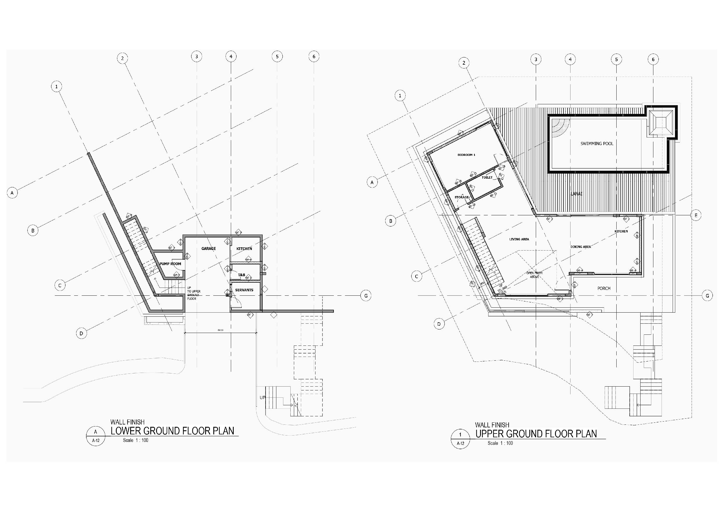 The lower ground floor of the 397.15 sqm house contains the garage and utility spaces (pump room, electrical panels, and laundry area. The maid’s quarter on this level also has its own bedroom, bathroom, and kitchen/pantry. Indoor stairs and a landscaped outdoor staircase from this level provide access to the upper ground floor. The outdoor stairs were designed to connect the outdoors with the indoors through a natural tunnel made of vegetation.
