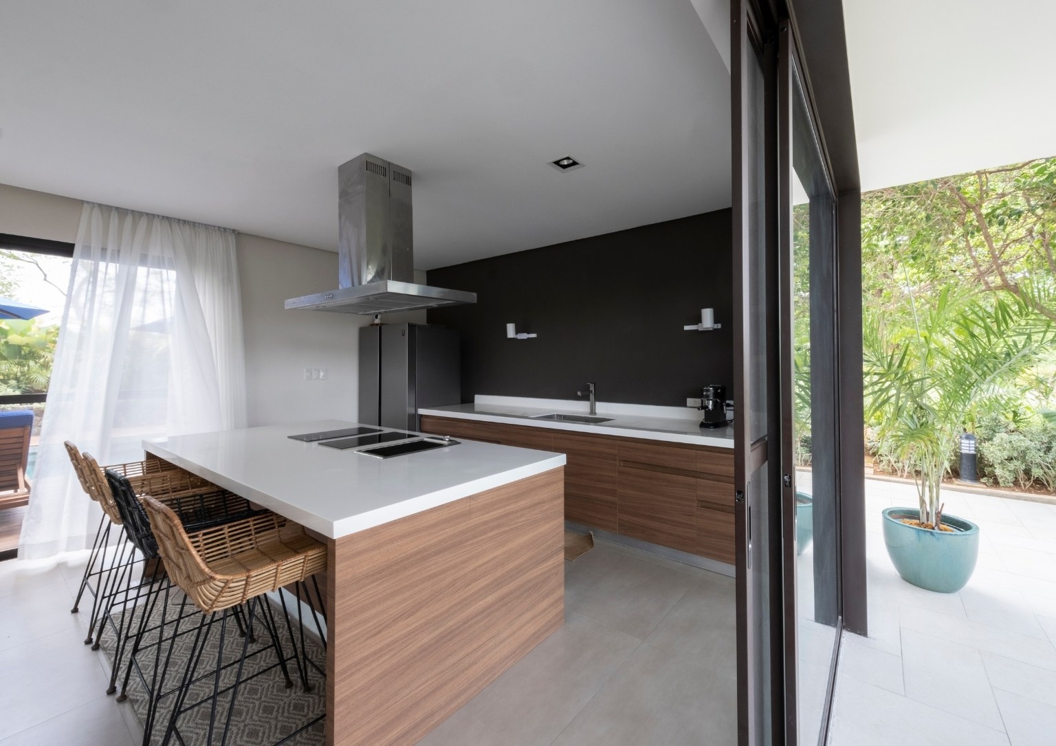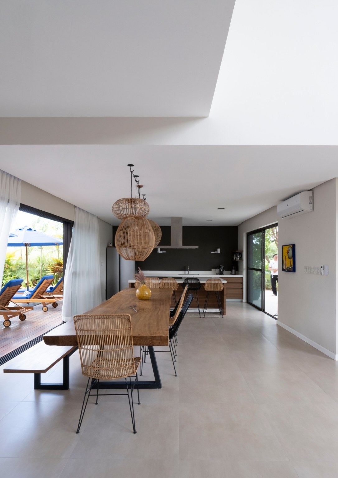 A brainchild of Italian architect Romolo V. Nati of Italpinas Development Corporation, Casa al Mare combines eco-sustainable approaches with striking architecture and interiors. These are present in the natural materials, open layout, and sustainability credentials that Ar. Nati chose to put together in a modern tropical design. Using a simple open plan living space, the design provides an unobstructed connection between the indoor and outdoor areas.