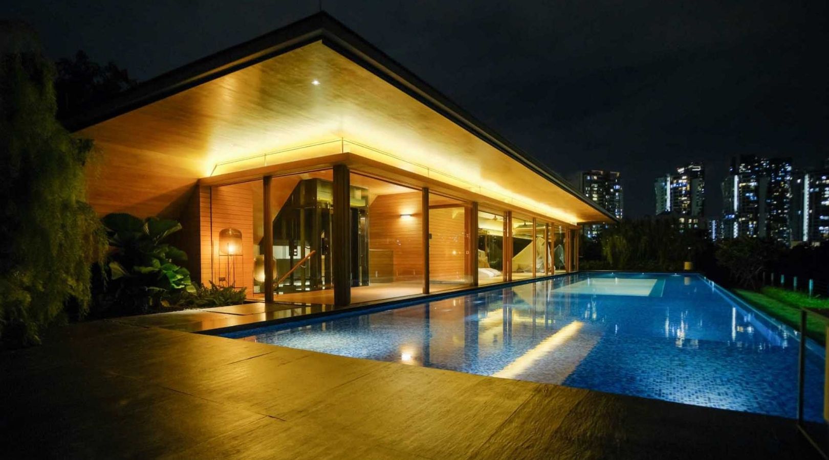 The Sky Pool House by Guz Architects in Singapore centers on verdant greenery. The Singapore-based studio completes the modern house in 2020. The most dominant element, the gardens, surround the entire property. Aptly called the terraced roof gardens, it gears toward keeping the home cool. Each level is provided with its own. The plants become part of the design as it flows over the edges of the roofs which then gives the house a warm facade.