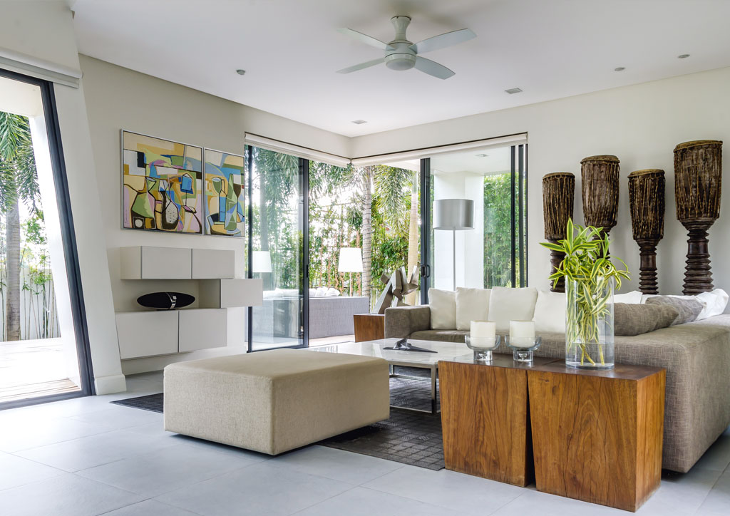 Breaking it up into two separate structures proved more costly, but doing so allowed their vision of a modern tropical home to materialize. “We’ve always wanted to live in house that has a resort feel, where we can be relaxed after a long day at the firm,” says Ding. Of the 900-square meter lot, the house footprint takes up about 350 square meters only. By scaling down the size of the house, pocket gardens and open timber decks that amount to a total of 120 square meters were created. The direct result is more open spaces for air to pass through, and more light to infiltrate as many areas inside as possible.