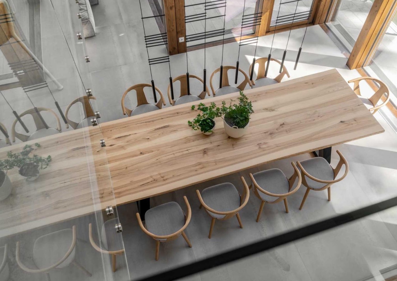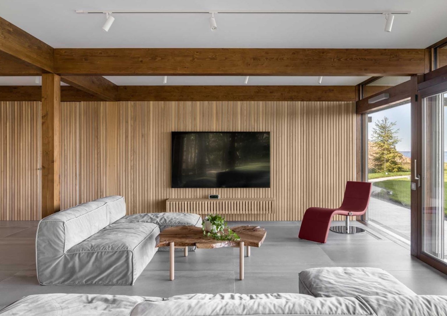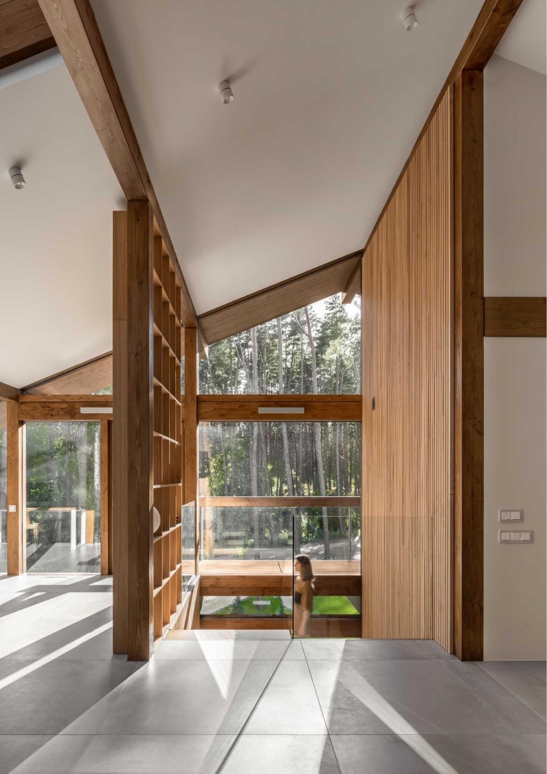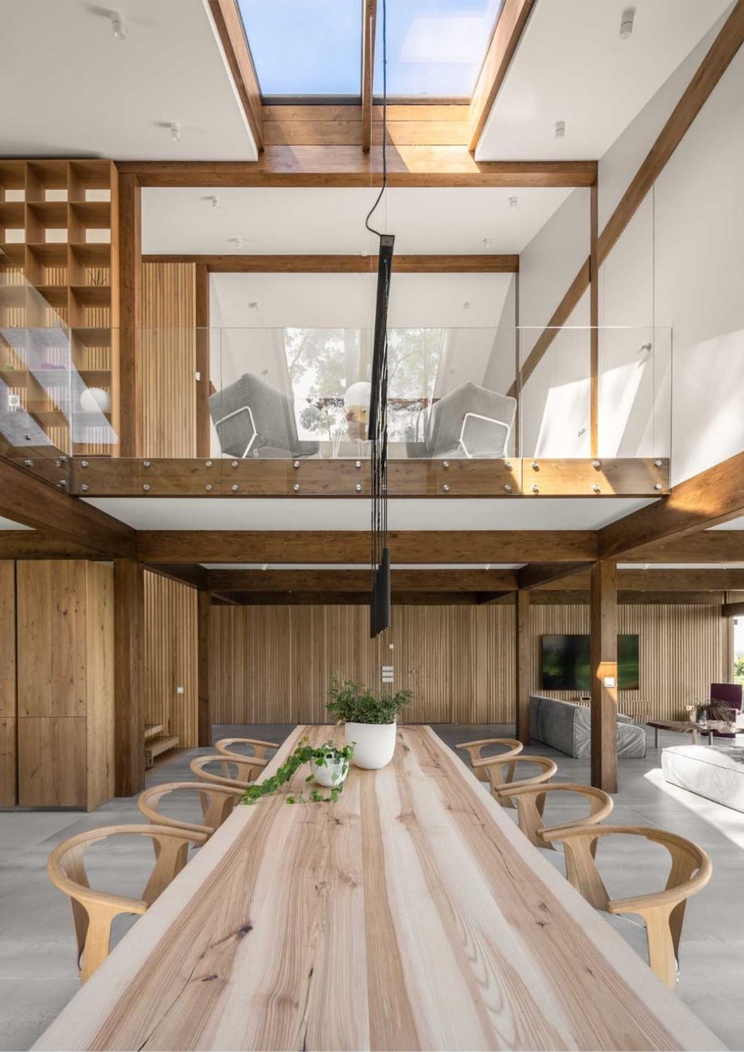 The classic wood accent in interior design has been a faultless method open to different variations. Here is one residential house created by Karlikova Architects in Kyiv, Ukraine that flaunts exposed wood beams and posts. The Bavarian Chalet inspires the structure, and the home was created to host large gatherings of more than 50 people.