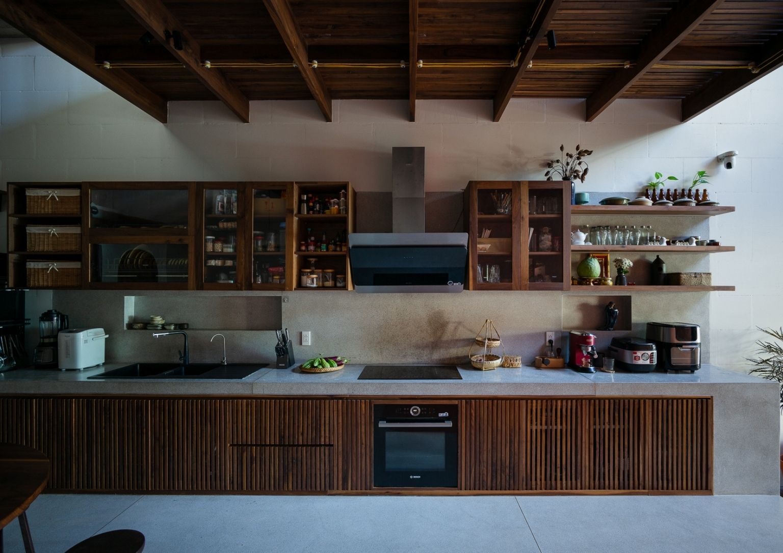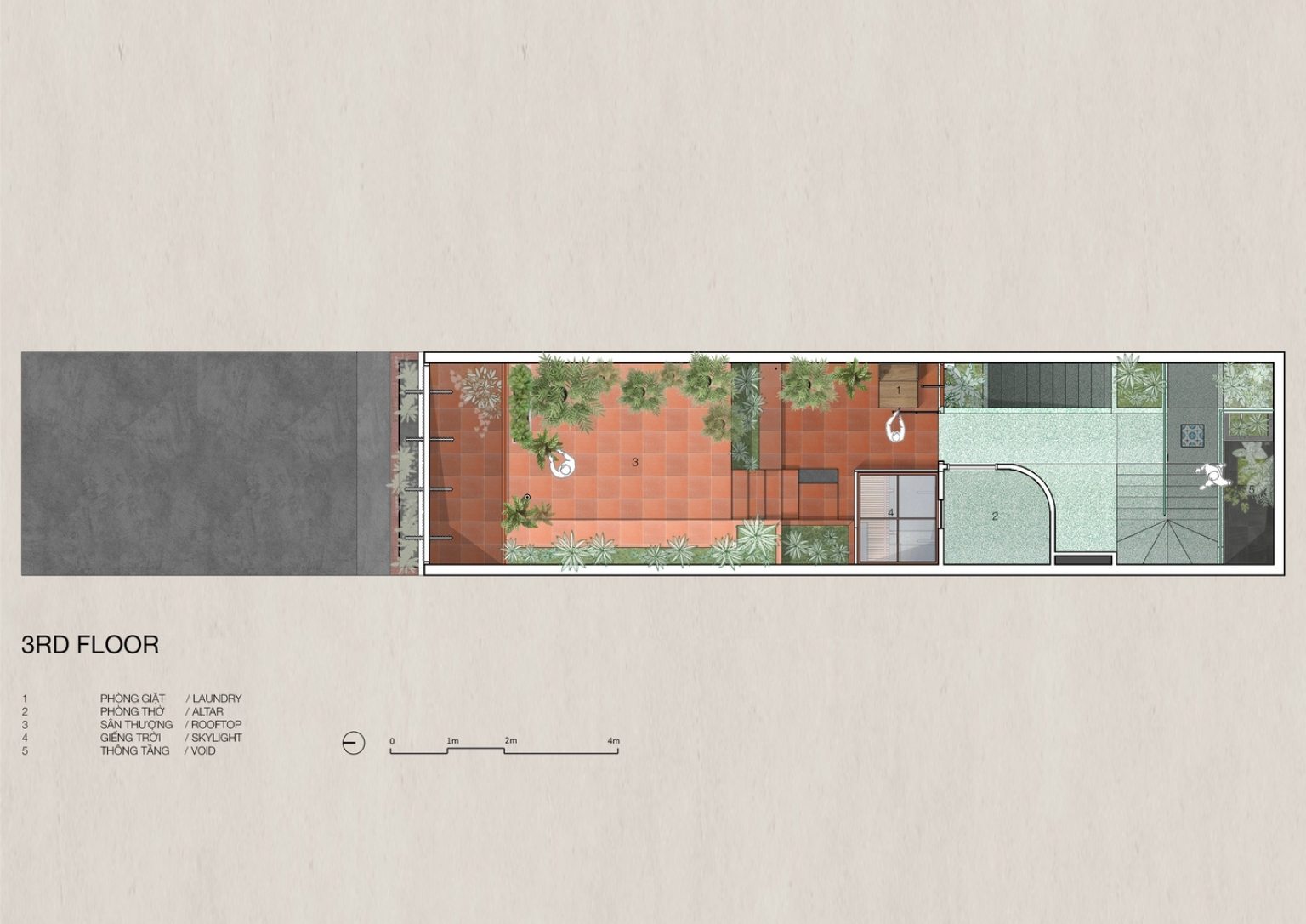 There is a part of Saigon where suburban residential areas are placed side by side with the industrial zone. A place where one’s neighbor could be a mid-sized factory. The environmental impact of the factories in the area does not hinder residents and builders from creating a dream home. Rather it pressed them into creating a home that can co-exist with such challenges.
