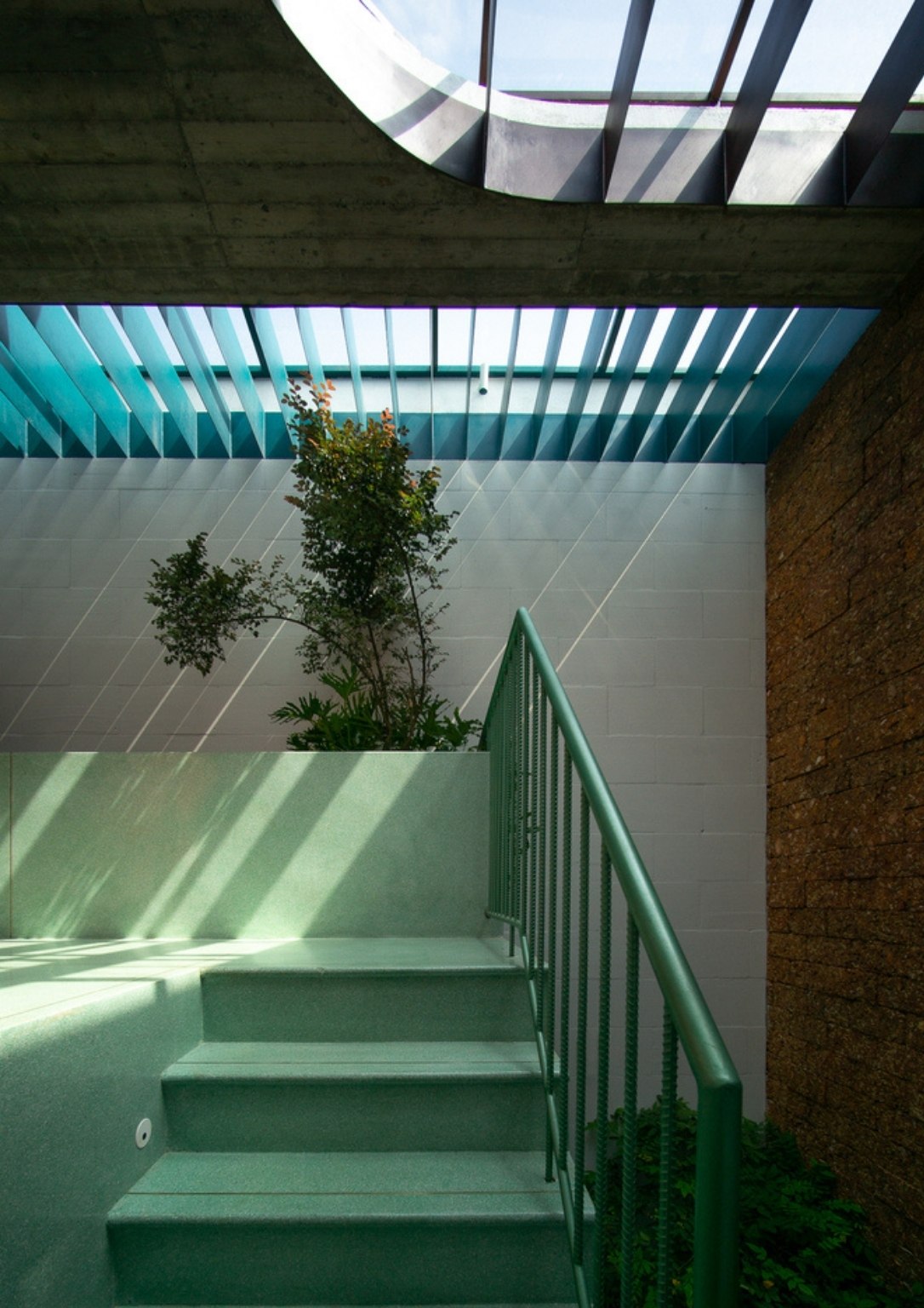 Natural light seeping thru the skylight and from the facade is a common setting throughout the spaces inside the 256 square meter house. This creates a positive vibe that the architects envisioned for the house. The spaces of the house interconnect. There is no division between indoor and outdoor, every space flows into each other.