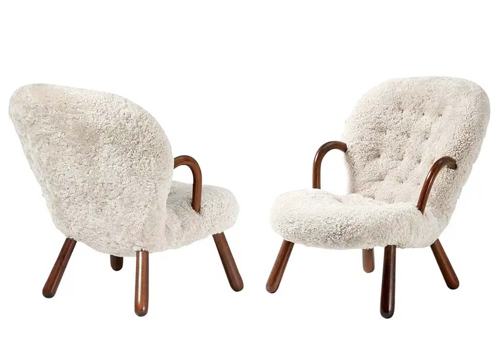 Philip Arctander was born in 1916 in Copenhagen, Denmark. He is originally known for his UN advisory role supporting affordable housing and his directorship at the Danish Building Research Institute until 1981. In 1944, he and a few other architects were tasked to design furniture as part of a contest by a newly-opened supplier NY FORM A/S in Copenhagen. His contribution was the beech-legged and sheepskin-backed Muslingestol or Clam Chair. The chair immediately had a limited Copenhagen release. By the time he left the furniture profession entirely sometime in the late 1940s, the Clam chair abounded as Nordic suppliers like IKEA took the design into a brief period of mass production