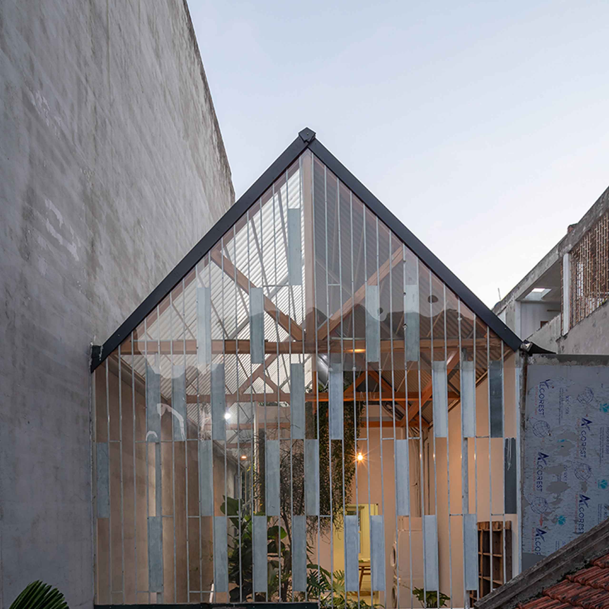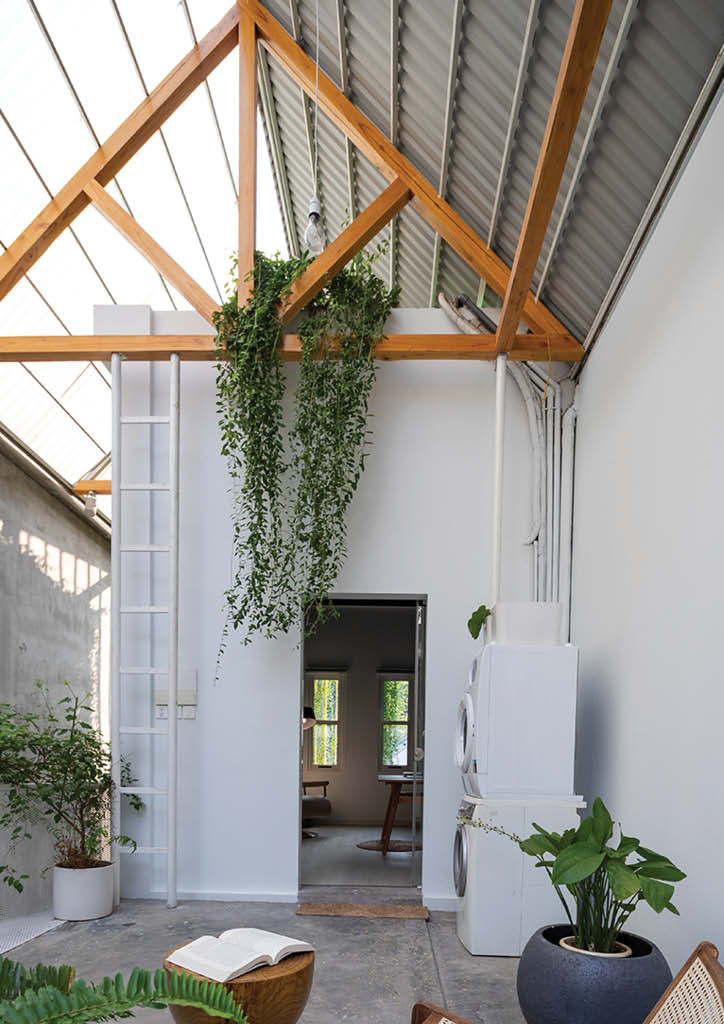 Only half of the diagonal roof is made of clear polycarbonate. With it, the interiors are doused with soothing, natural daylight.