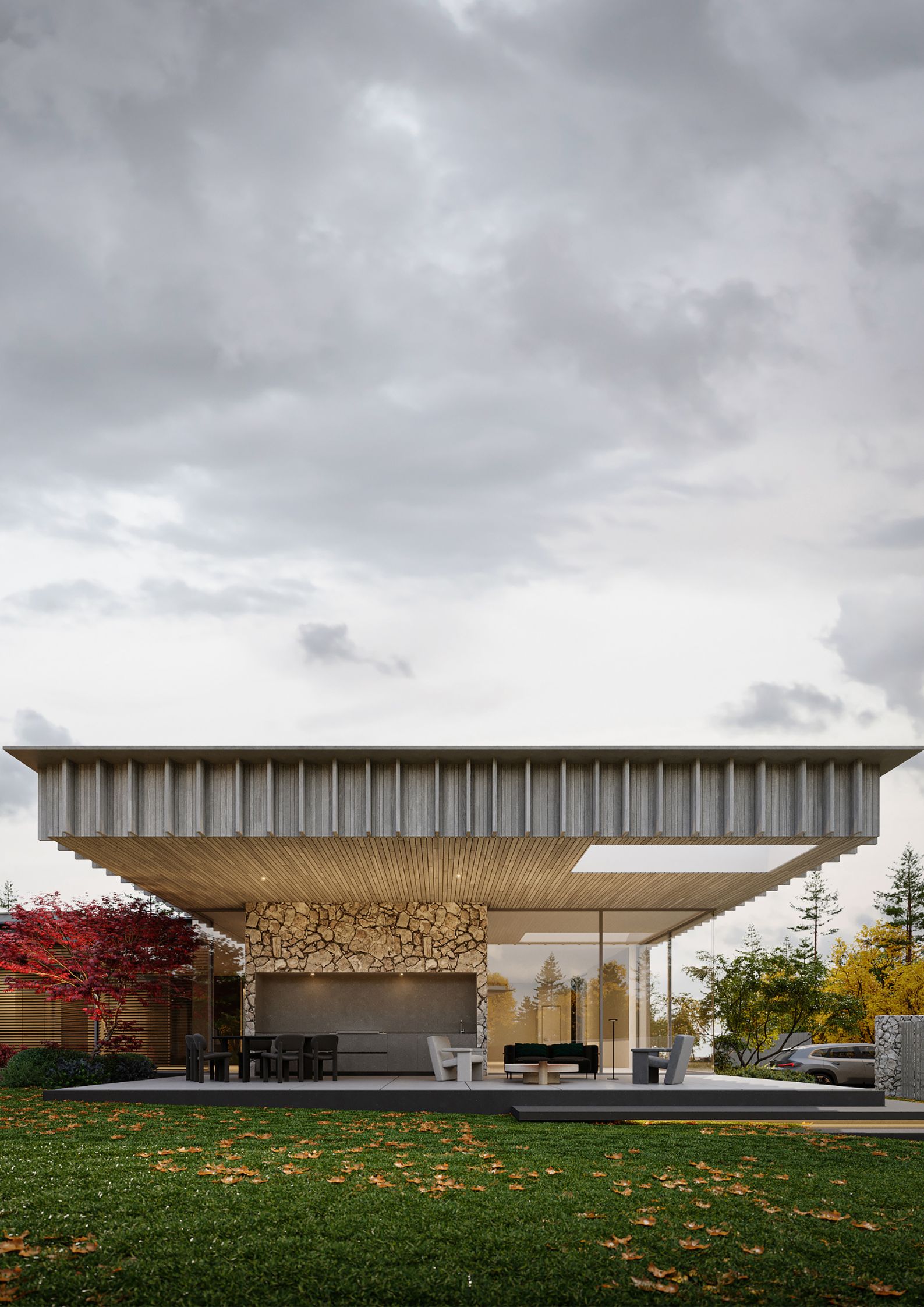 A peaceful retreat within a dynamic natural landscape, Introspective House’s overall design speaks to a philosophy of harmony with nature. Its layout emphasizes tranquility and a serene living environment. Clean lines, flat roofs, and an open-concept design blur the boundaries between indoor and outdoor spaces.