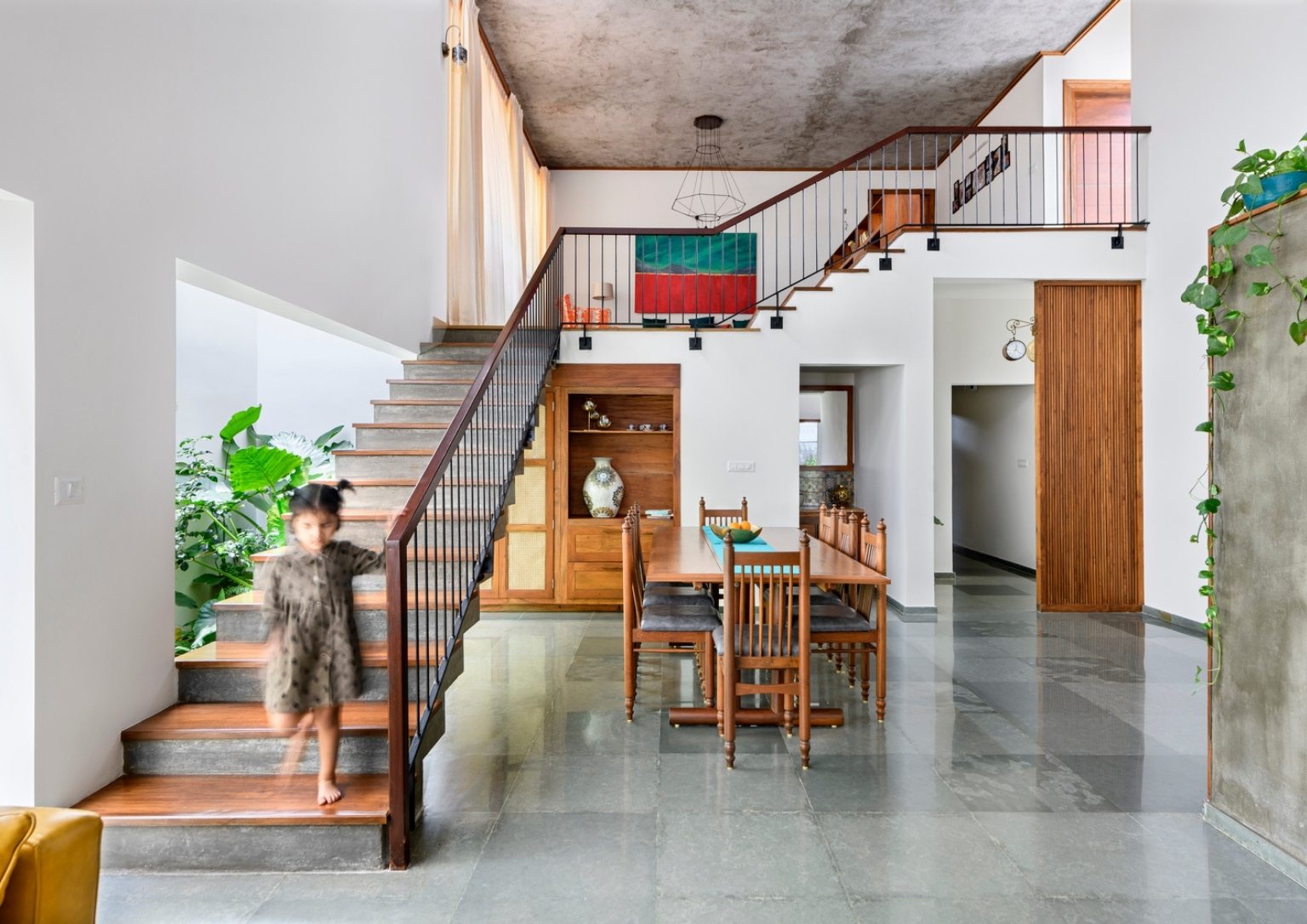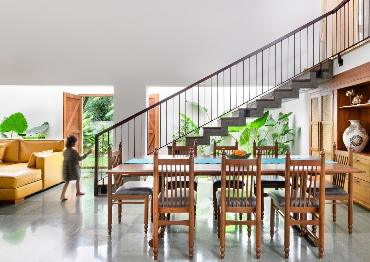Standing in Mannarkkad, India, is a 400-square meter house by Barefoot Architects with a layout blurring the lines between the interior and exterior. The site’s location is in the middle of an active region where most government institutions are. Consequently, the client wants a comfortable space that balances the city’s hustle. The architects create a tropical-themed residence with several communal areas all abundant with ventilation and natural light.