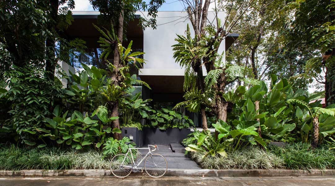 The Veranda House translates lanai design’s typology into an entire structure. Designed by Studio Espaazo, a lush tapestry of dense foliage envelopes the residence, occupying one-third of the property together with a retail Bonsai Boutique. The project preserves all present trees and greenery in line with its concept of connecting the house directly to nature.