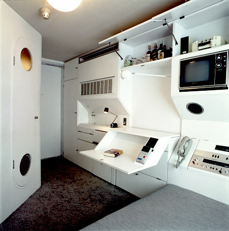 Each capsule inside the Nakagin Capsule Tower was designed for efficiency and functionality. Working with only 10 sqm of floor area (2.5m x 4m x 4m), each room maximizes space. The bed, desk, and storage was built in, which directly lines them to the walls. Likewise a compact bathroom, reminiscent of an airplane lavatory, further saves on space. Lastly, each capsule only had one single large porthole window for ventilation and natural lighting.