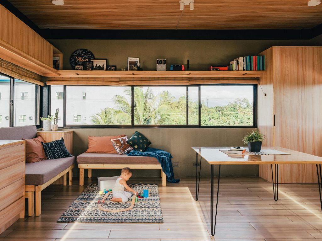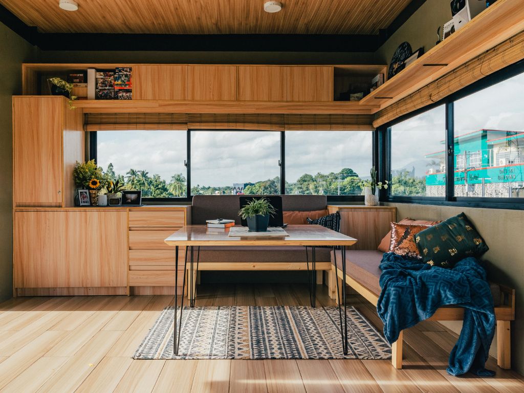 In this post-pandemic society, many young professionals are opting to work from the comfort of their home. This is not so different in Zandas and Edith Architecture‘s own professional practice. As young freelance architects, Zandas and Edith Abenes took on the challenge to re-imagine their work from home set-up, and weaving their daily routine into the physical layout of their space. In this project, the two young architects transform a 17 square meter space to accommodate their daily work-life activities.