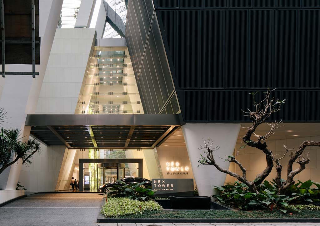 The NEX Tower is a faceted jewel along the stretch of Ayala Avenue between VA Rufino and HV de la Costa Streets in Makati, where the country’s once-premiere office buildings are now aging, not all too gracefully. Nova Group’s 29-story skyscraper designed by Skidmore, Owings & Merrill with R. Villarosa as architect of record is a welcome development, not just for its unique, sliced-off façade, but also for its stunning front lobby and elegant back lobby, which hopefully will nudge NEX Tower’s neighbors to clean up, spruce up, and redefine the way they welcome people into their buildings.