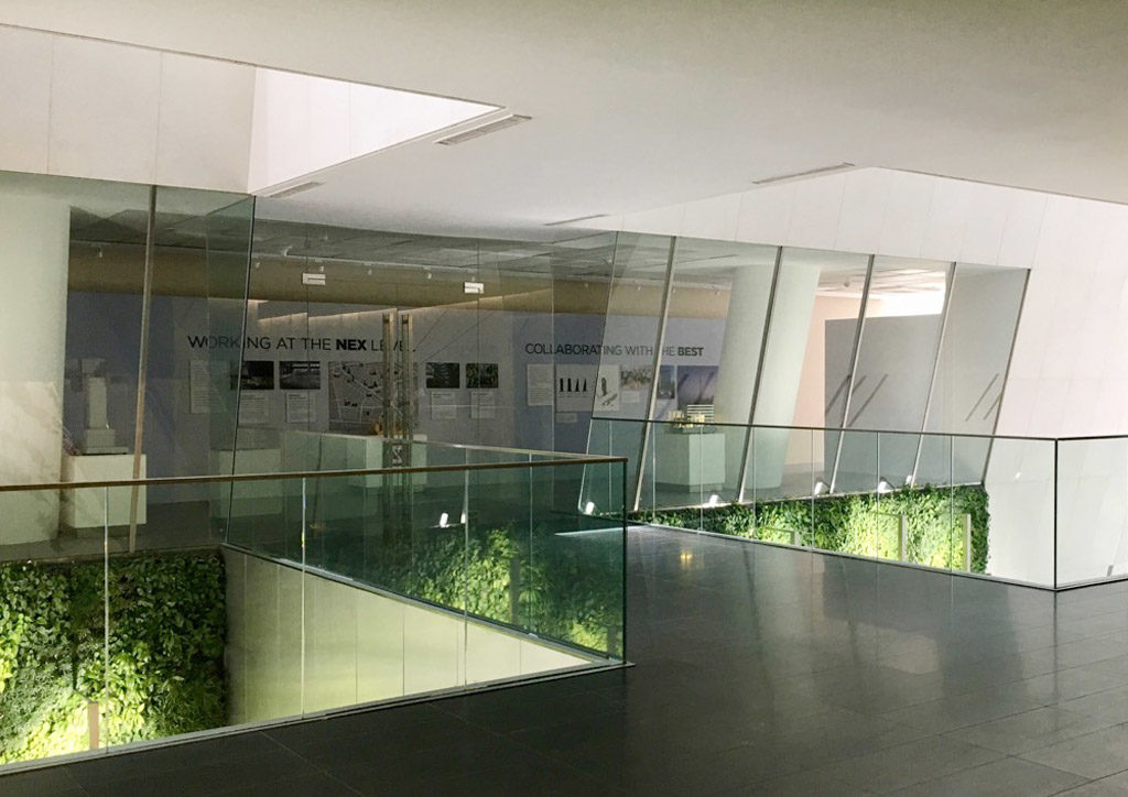 Do you kill the lights at night? Yes, we turn them off at night. The plants need to rest. The whole idea of wellness and health is essential to Nex Tower. Apart from being nice for the people who work here—it’s the first thing they see when they come to the office; it’s the last thing they see when they go home—what this wall does is convert carbon dioxide into oxygen, so the air in here is cleaner than the air outside.
