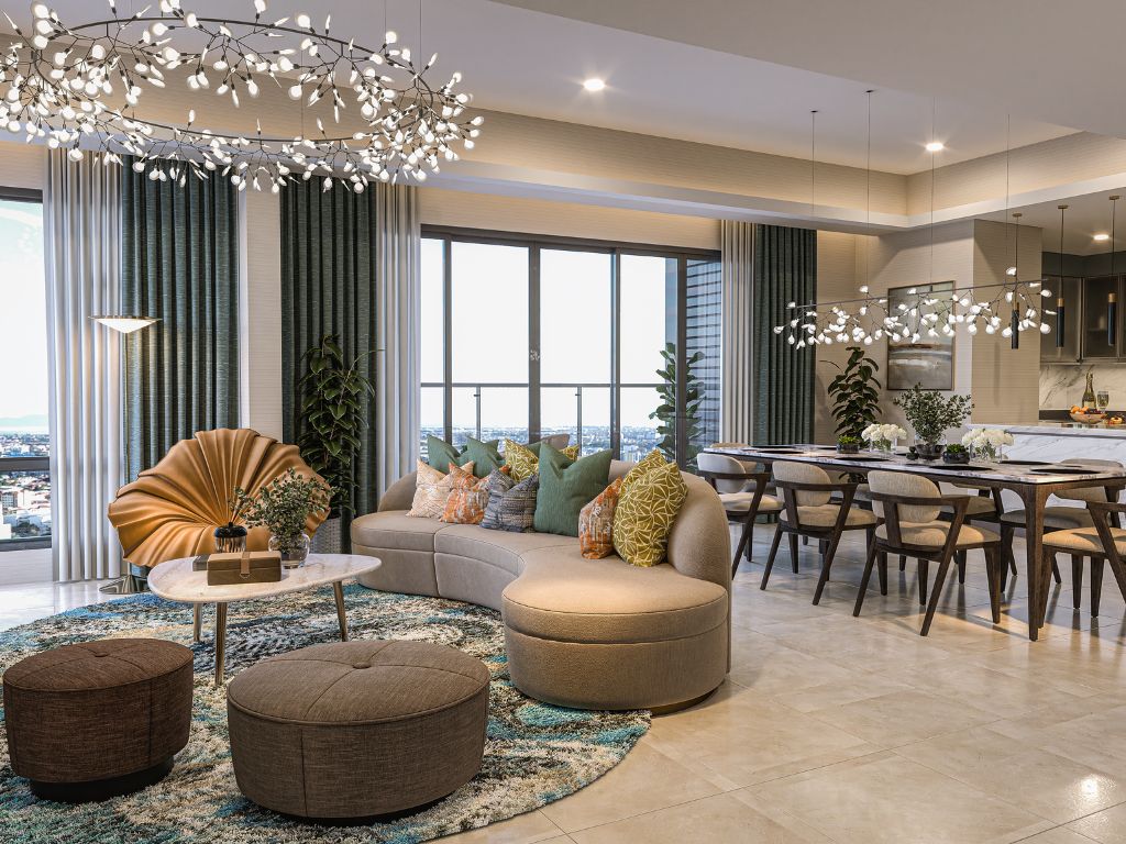 Occupying the very height of luxury are the bi-level penthouse units, sprawling over 390 square meters. These luxurious havens feature an iconic curved staircase that takes center stage, adding a touch of both elegance and functionality to your home.