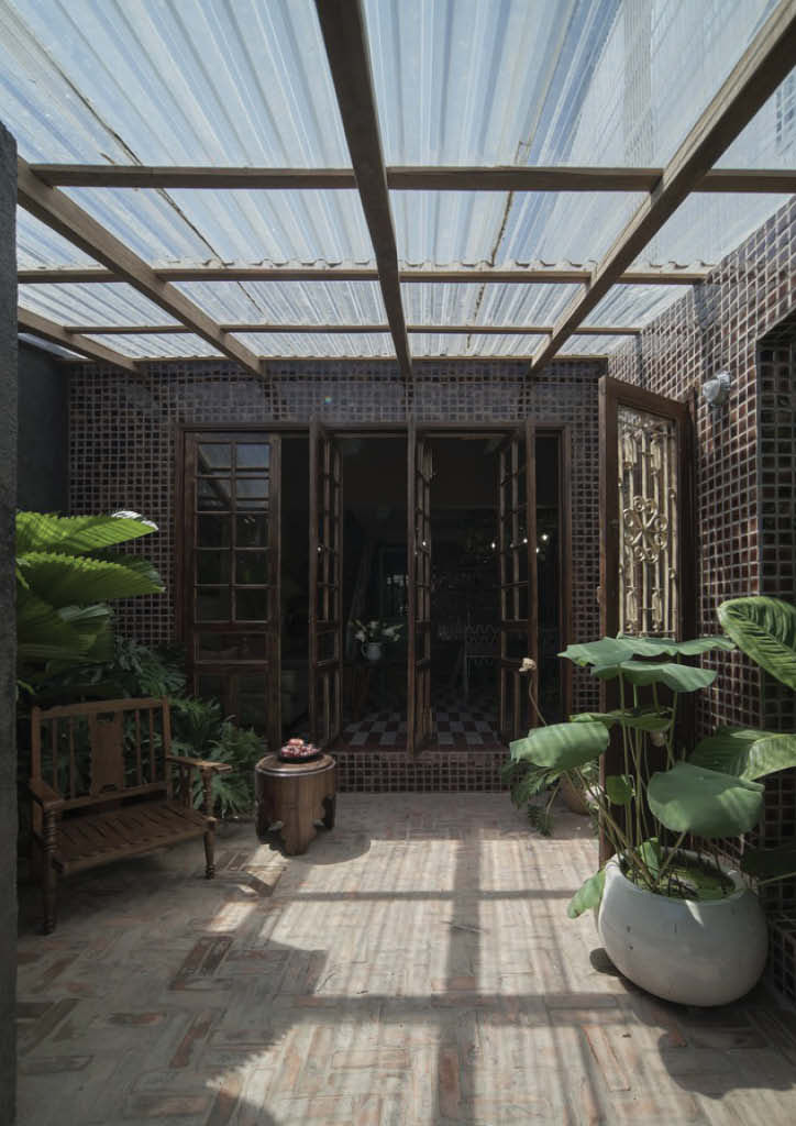 The house has an earthy color palette–browns, earthy oranges, and red hues of fired clay tiles. In some of the oldest homes, there’s a certain rawness that only they can present. The Ngâu House uses warm-tone wood combined with different linens and bamboo mesh curtains.