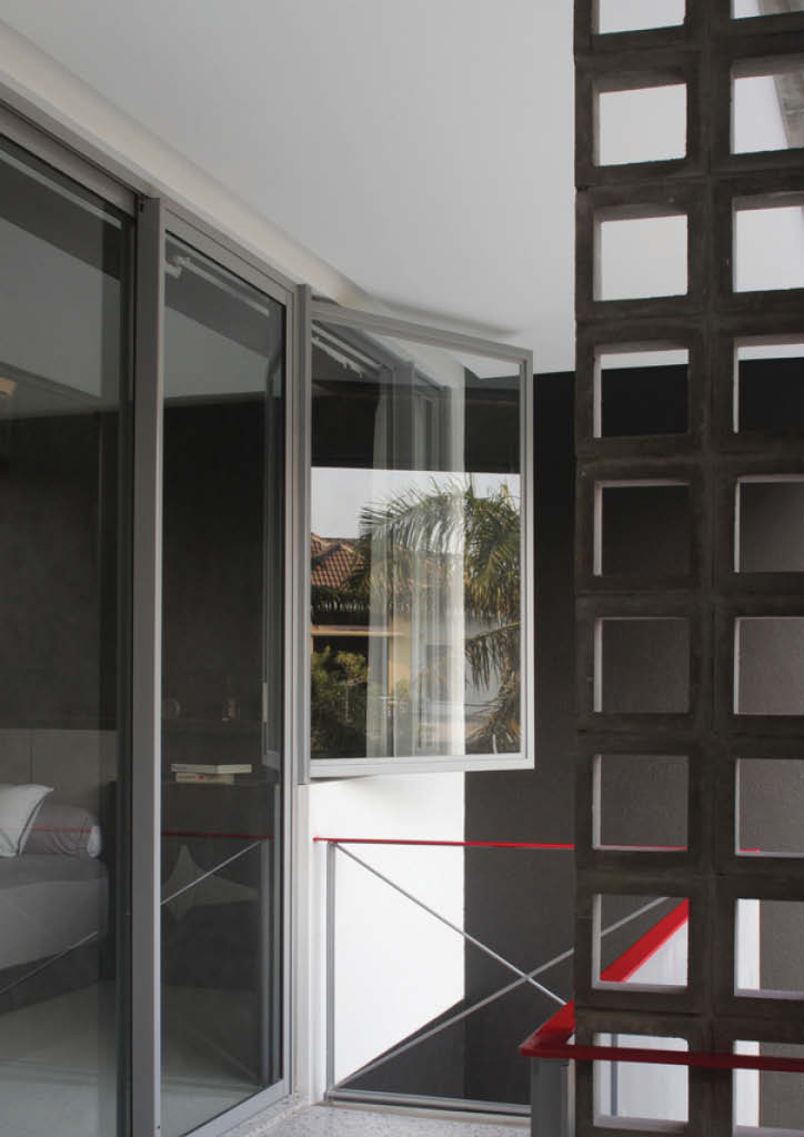 The 18x18cm concert breeze blocks create a new enclosed but passively-cooled space at the front of the house