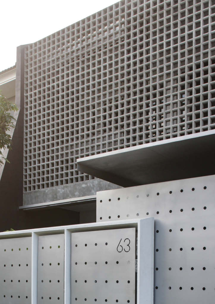 Openings within the concrete facade allow for breathability but still give privacy for the inhabitants.