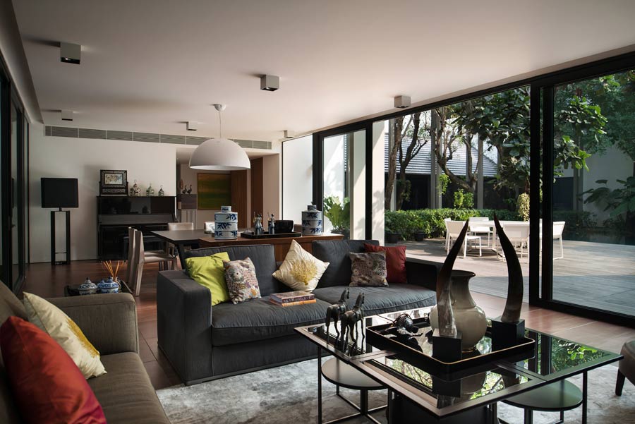 “The family keeps their Chinese traditions strong so we worked that in through the terracotta-colored floor in the living spaces and the geometric entrance arches, referencing the old temple gateways,” added Tan.