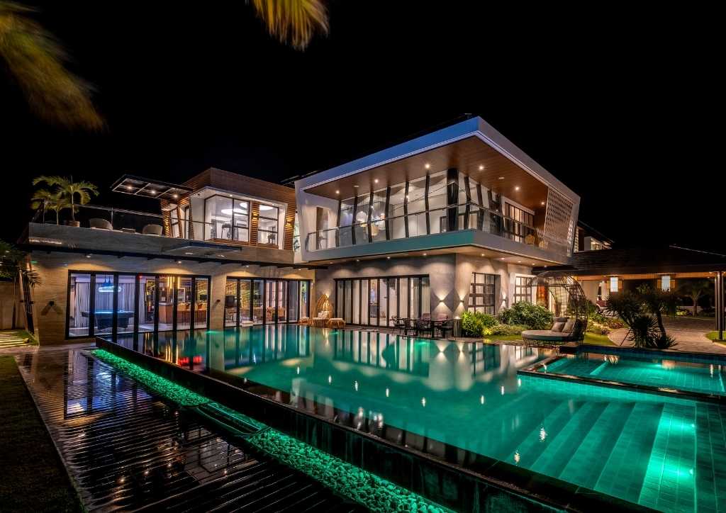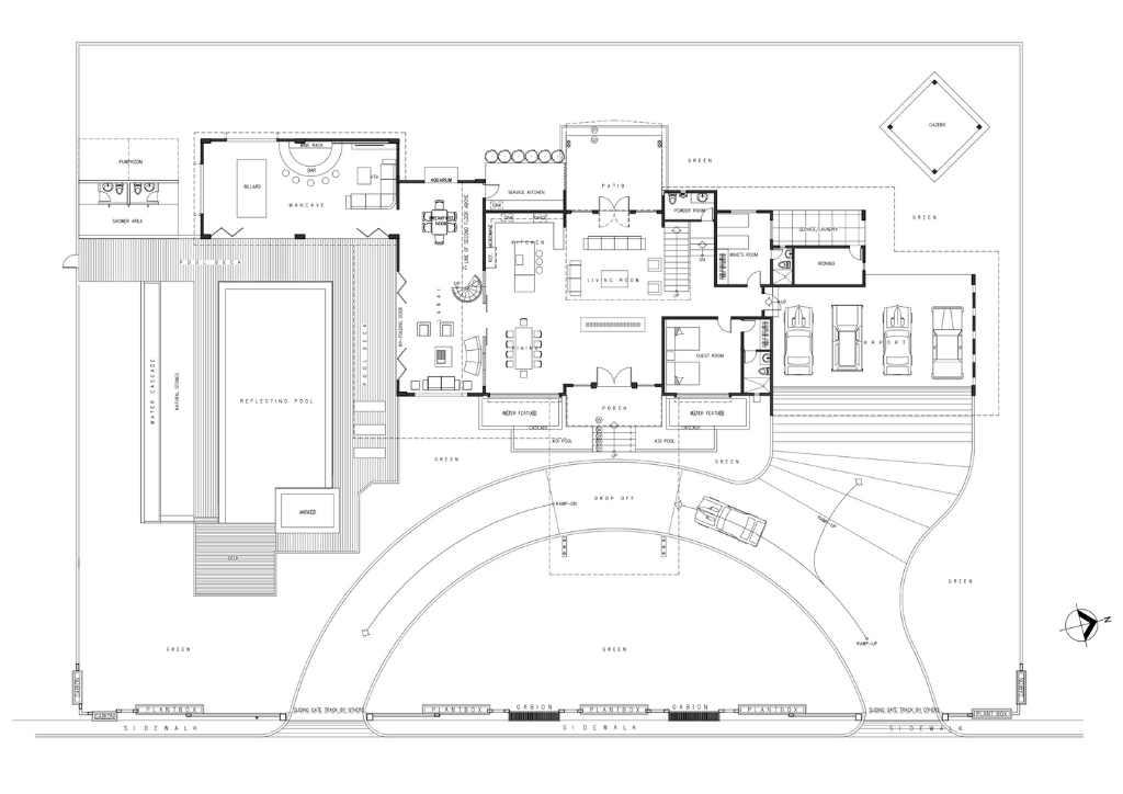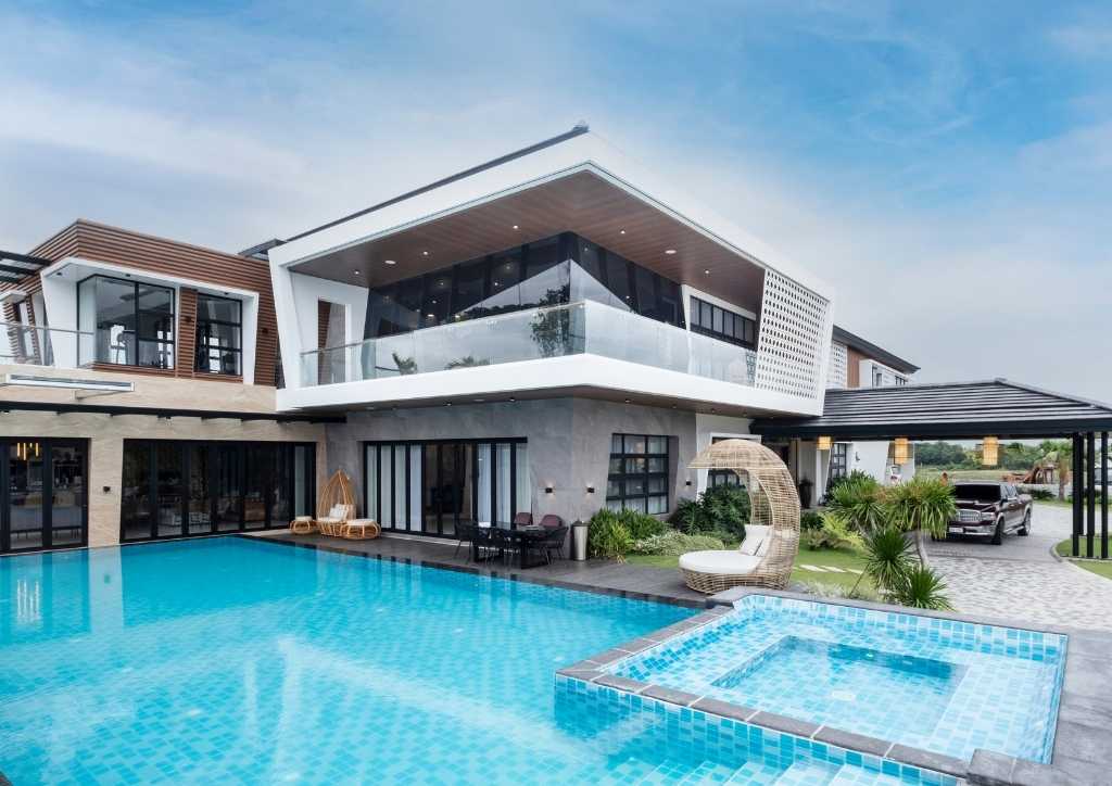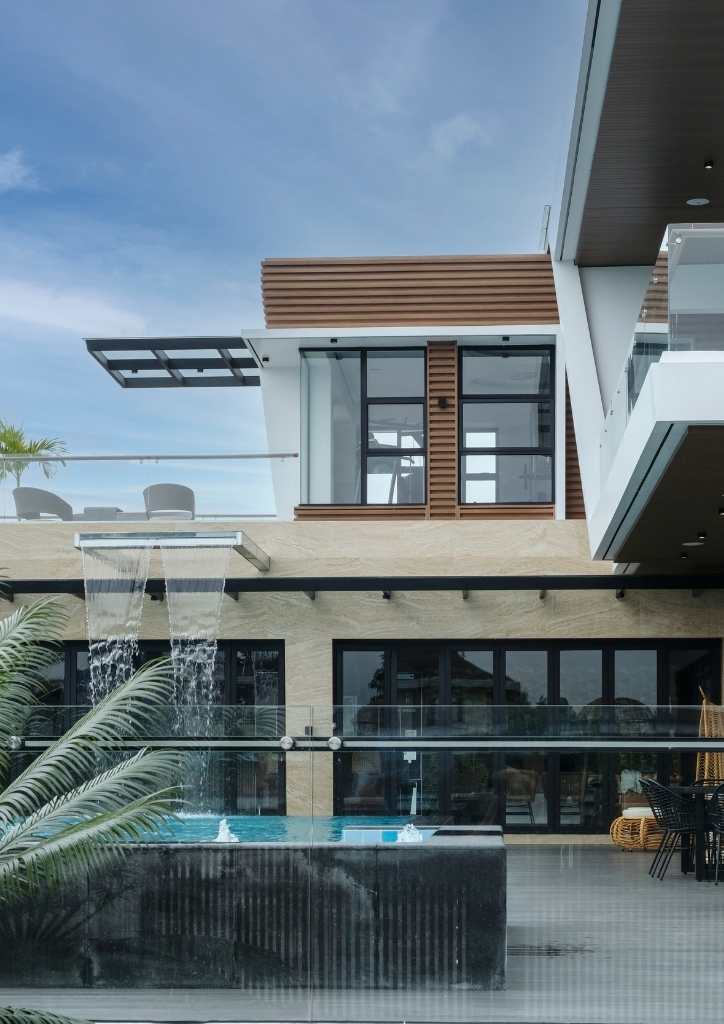 The house has a receiving (or the place for tea-time of the lady of the house) located at the lanai where they entertain their guest fronting the raised sculptural look of the pool with water cascading on edge. A mancave at the west side intended to entertain the gents houses a billiard table, the bar and KTV.