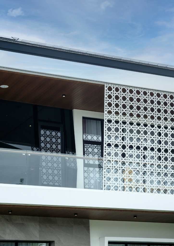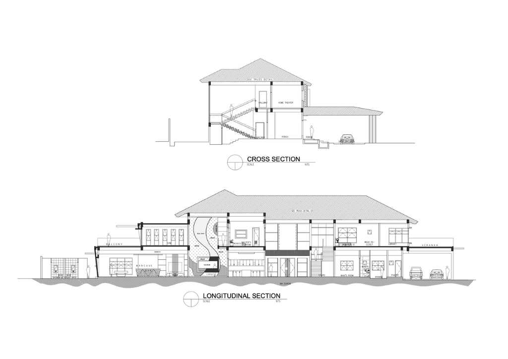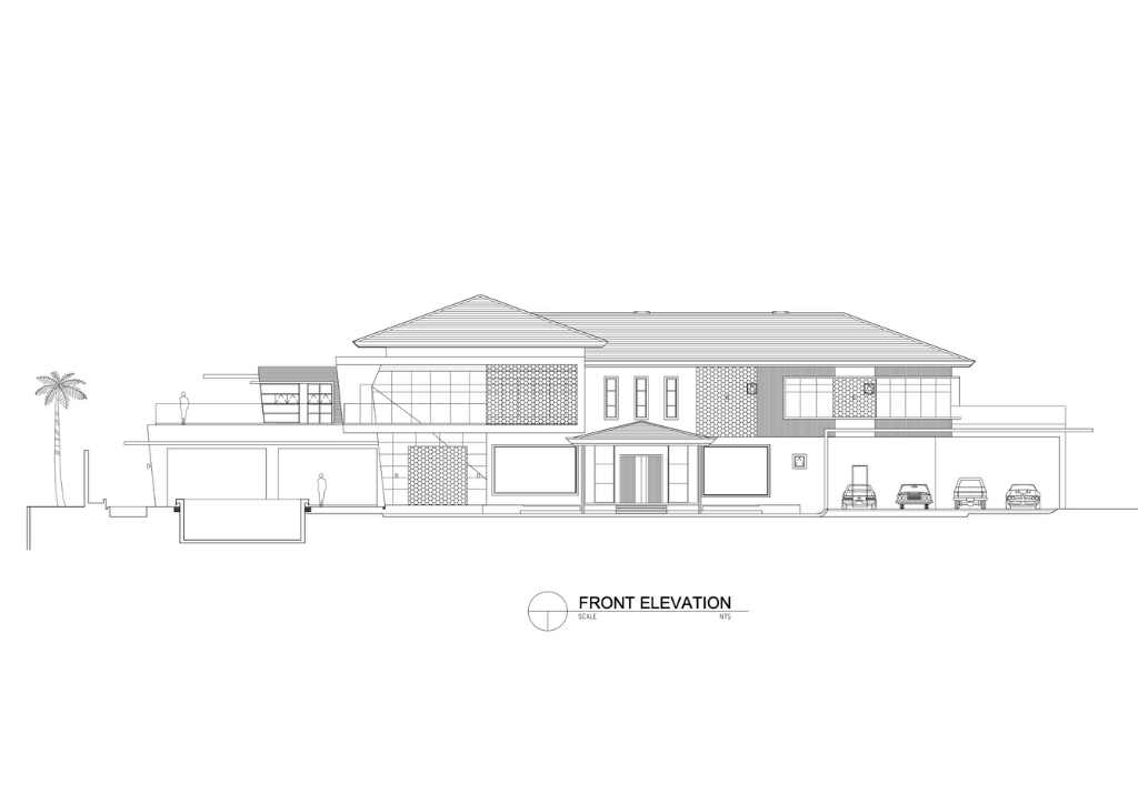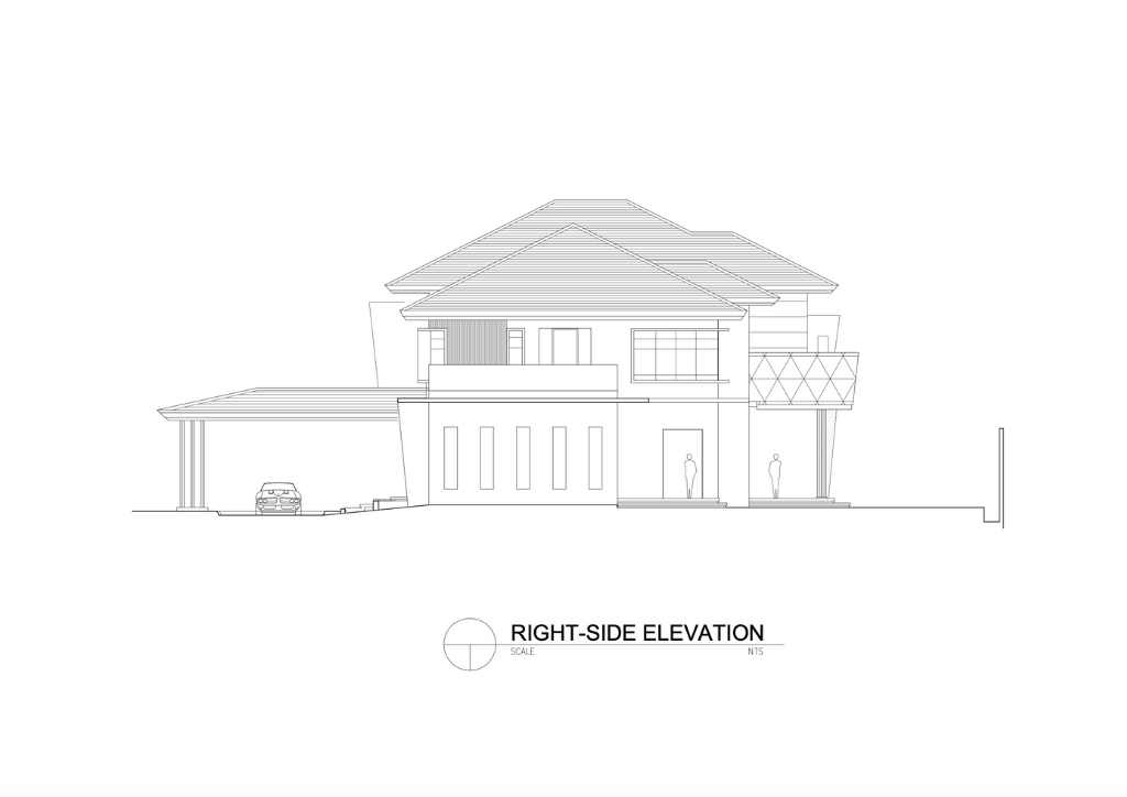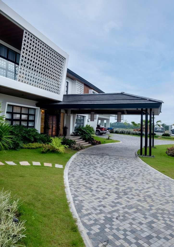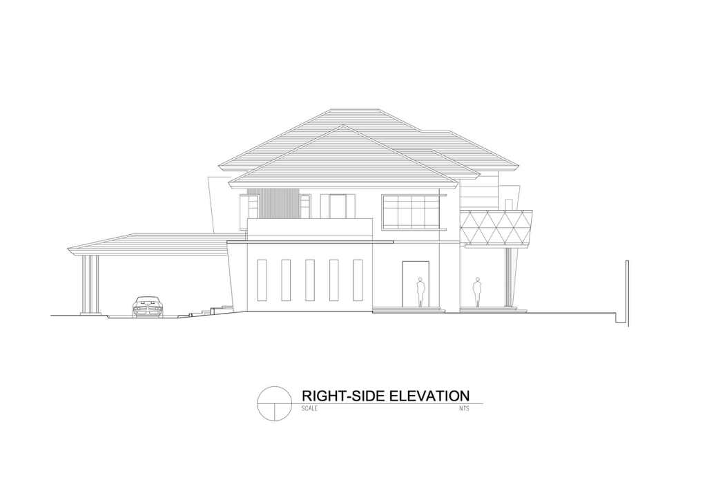Isabela is one of the typhoon-prone provinces in the country. This is a big consideration in the design. The inclined lines of the butaka were used on the design of the curtain walls to deflect or minimized the impact of strong winds. The design of solihiya are echoed on the façade of the house giving shade at the master’s suite. The long arm rest transformed into the Porte Cochere of the house.