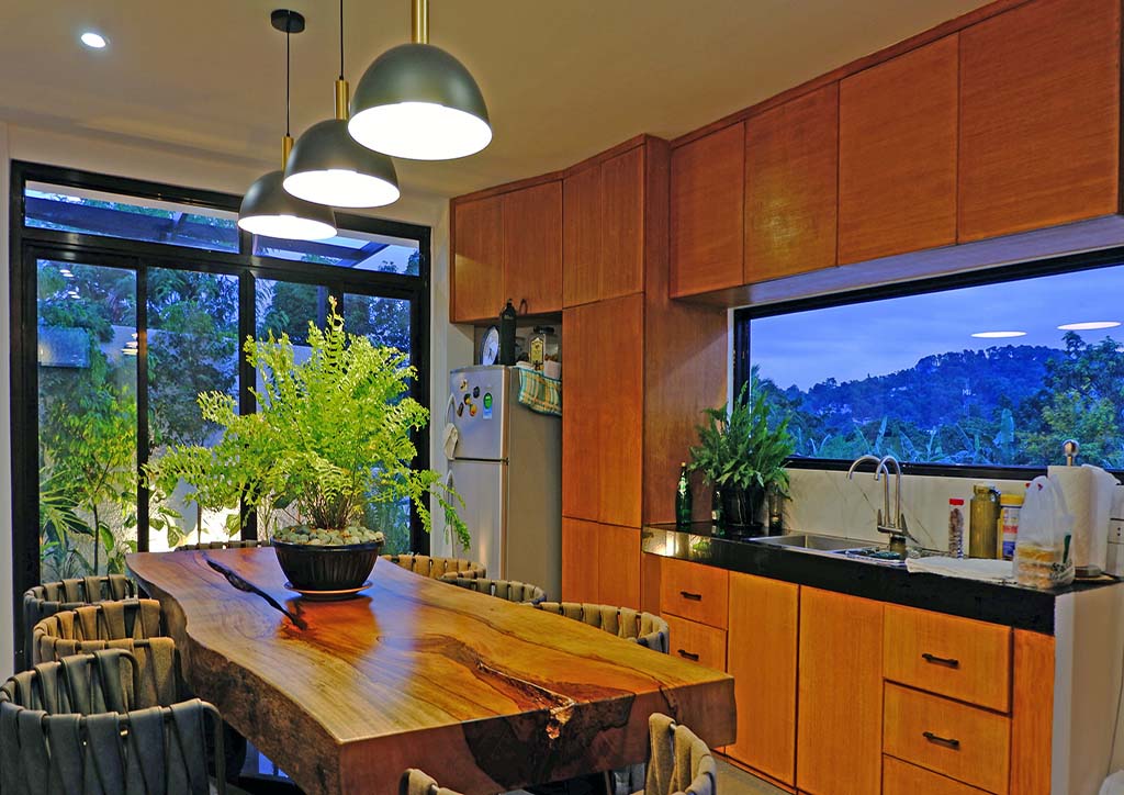According to the architects, in terms of planning, the topmost area of the hill was given special importance. As a conducive space for family activities, with the existing tree as the innate background, this area was maximized with open flexible spaces that also allow residents and guests to enjoy the breathtaking views of the mountain ranges of Sierra Madre. Following the lot’s contour also, several terraced gardens were able to be incorporated. The clients now use these areas for al fresco dining, meditation, bonfire, and other intimate gatherings.