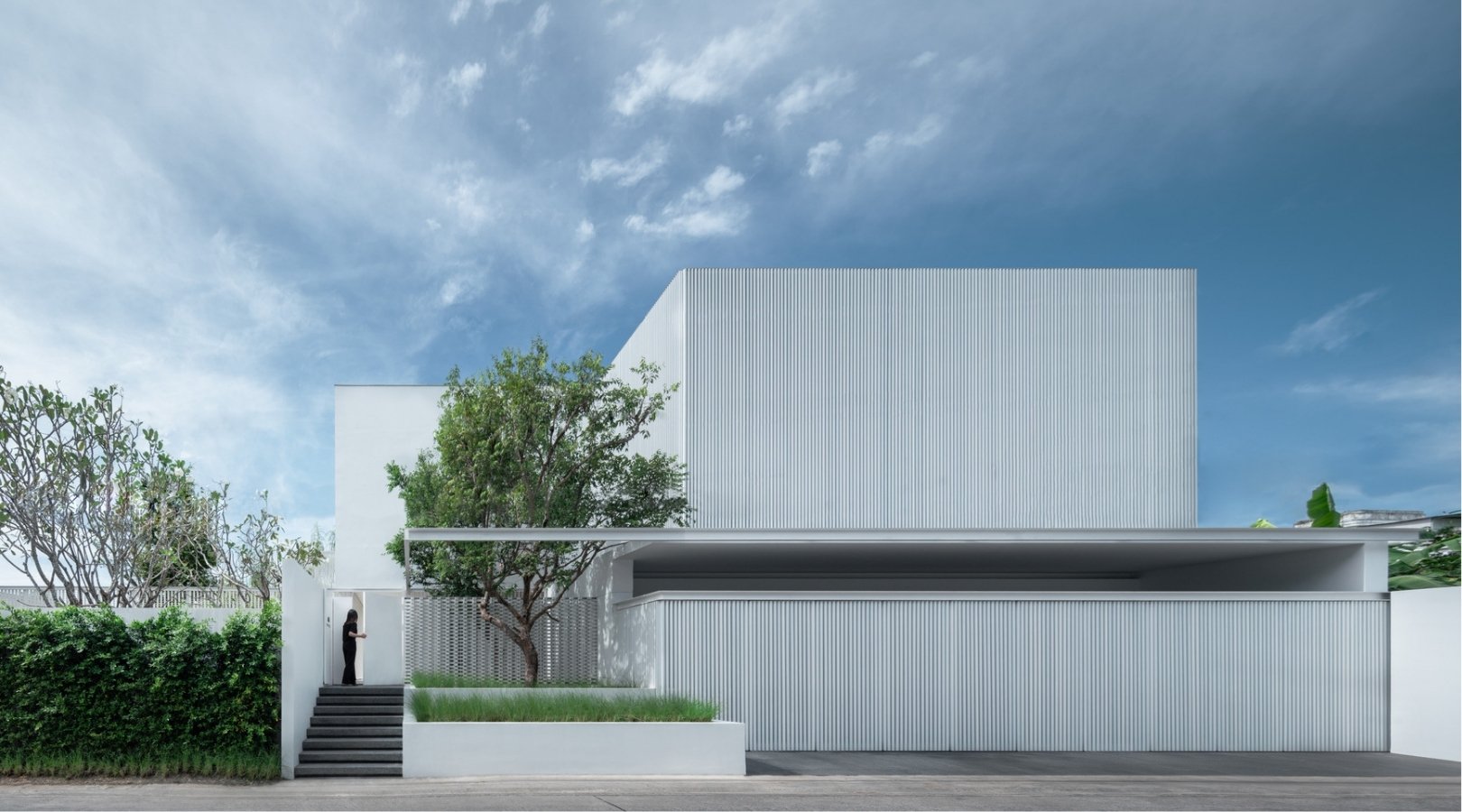 Veil House is a two-story residential structure in Thailand. The architect describes it as a house of modest plans with ambitious social implications. It follows a standard L-shaped plan which reveals layers of complexity upon closer inspection. The architect encapsulated the house with gardens instead of arranging it along the site’s perimeter around a central court and avoiding the surroundings. The gardens are not hidden away but are to be shared.