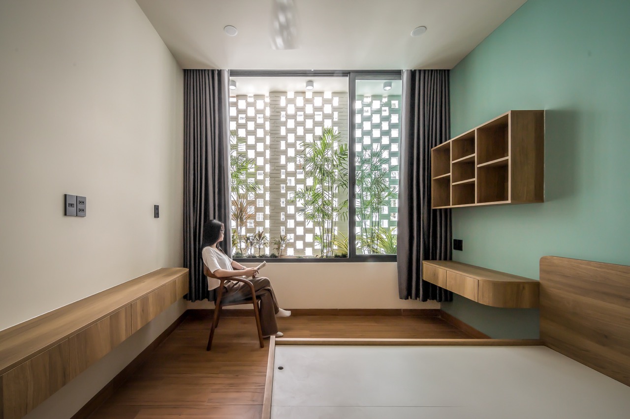 On the third floor, an open terrace brings in the tropical breeze and overlooks the sights of urban Thu Dau Mot. An outdoor space is ideal for activities such as exercise, meditation, or simply enjoying the sun. Again, nature proliferates as rays of sunshine blesses the lush greenery.