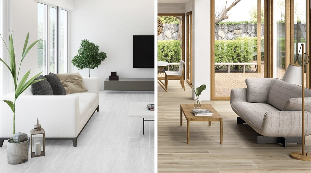 This interior style focuses on creating a tranquil and well-balanced space made up of harmonious pieces blending seamlessly. It incorporates light tones like white, ivory, light brown, and gray—shades you often see in an Asian home. In addition, it has a tight connection with nature and other earthy elements, including wood, making it a superb choice for tiles. Floors with wood-looking tiles have a timeless visual appeal that can easily fuse with different shades and textures to create a zen-like vibe within your home.