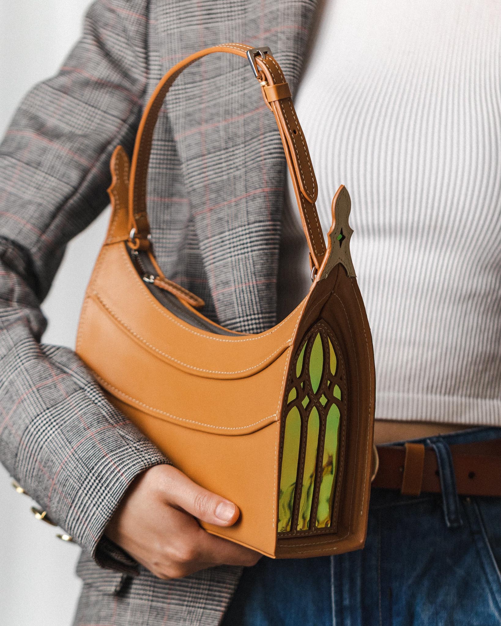 This year, Yue Shi incorporates architectural elements into his work. In new bags, there are features like arches, doorways, stained glass windows, and vaulted ceilings. Architecture has always been an interest of Yue Shi’s, turning it into one of his most prominent themes for his bags. Living in Sydney also fuels this love for architecture as the city constantly exposes him to a wide array of classic architecture that the city beautifully preserves.