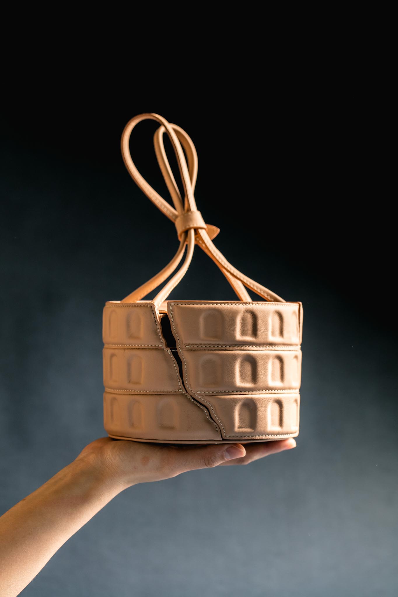 “The intricate details and captivating forms of these buildings never fail to draw me in. Leather bags are typically associated with qualities like softness and suppleness. Transforming them into pieces that incorporate geometric shapes and distinctive structures presents a challenge that I wholeheartedly embrace.”