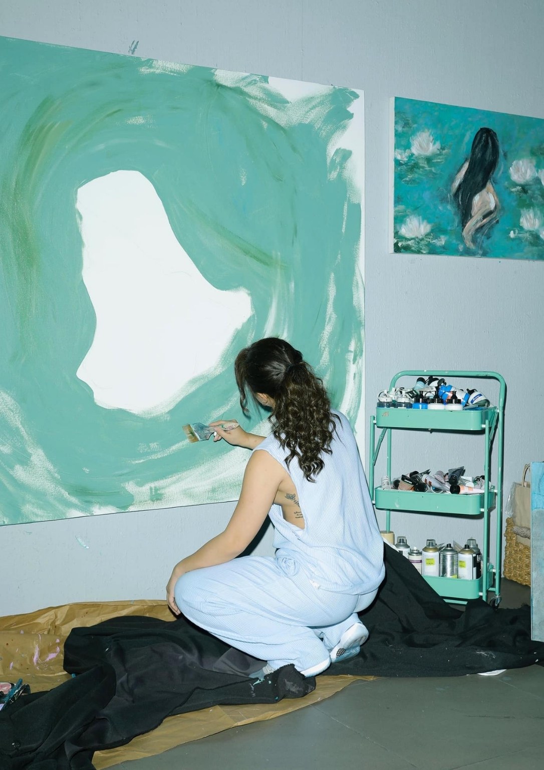 The 24-year-old multi-hyphenate visual artist Kim Cruz breaks into the local art scene. This stylish and adept creative has taken the Philippine contemporary art world by storm with her impressive works focused on the female form and figure. A former VJ and ESPN Philippines host, her pursuit of art started during the pandemic. Since then, she already had two sold-out solo shows in less than a year. The most recent was Nymphéas, an exhibition at Secret Fresh Gallery, where she debuted a new art style. Here, she shares what inspires her, her creative process, and the most important advice that she always keeps in mind.