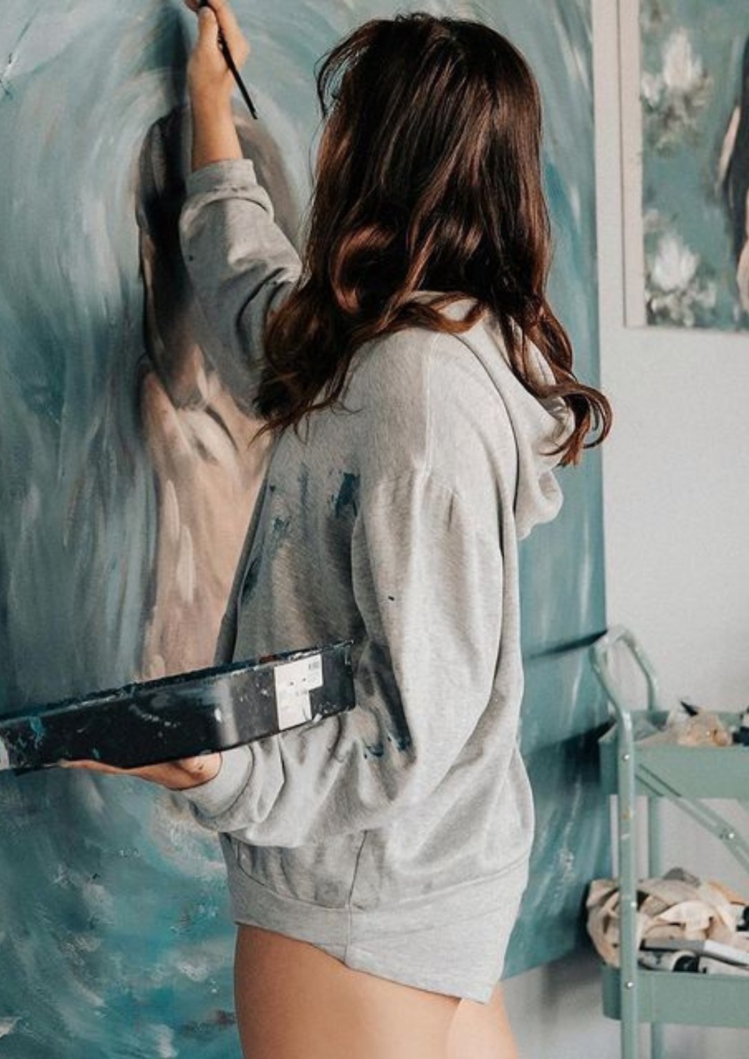 Before releasing a collection or certain pieces, Kim would travel and immerse in nature to unclutter her head. She considers the ability to manifest and materialize her creative thoughts very spiritual and nourishing. After the initial process of finding inspiration, she plans out the execution. Learning different techniques and methods for art is something she immensely enjoys. Being an art student had a huge influence on the process because she had spent a lot of time reading about art history and the technicalities of art. For Kim Cruz, the mental preparation takes more from her than actually working on the pieces. She just goes with the flow when it comes to painting and sketching.