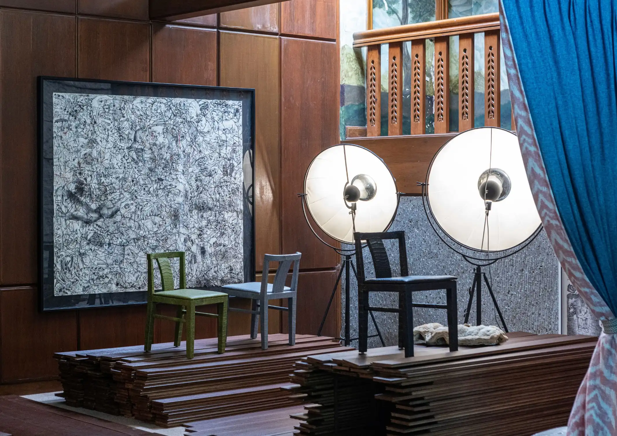 He has set up part of his living area to display the chairs with large wall art from his friends at Art Informal. In a room in the lower ground floor, there are shelves of kitchen ware he has sourced from his travels, linens from India, and some throw pillows from Morocco. “The thing is, I decided I do not want to focus on solely being a furniture maker nor do I want to focus solely on selling plates. So for me, anything that catches my attention that I feel is luxurious then I will go for it,” he adds.