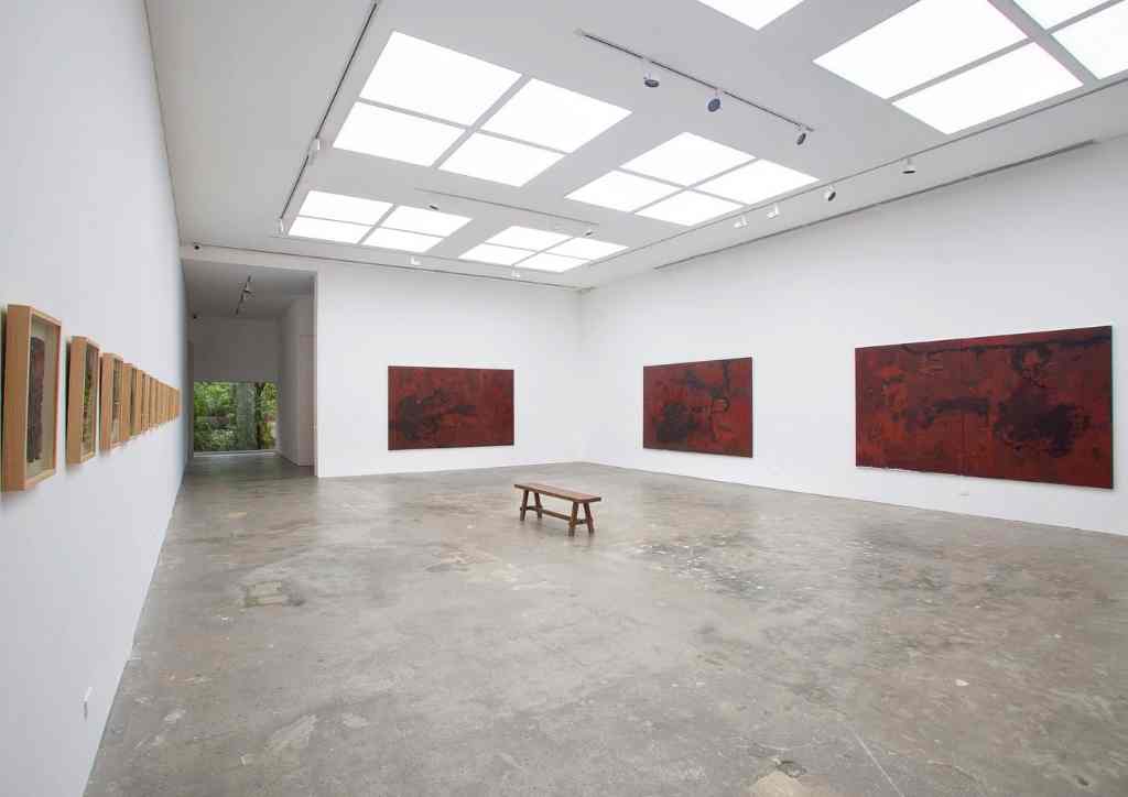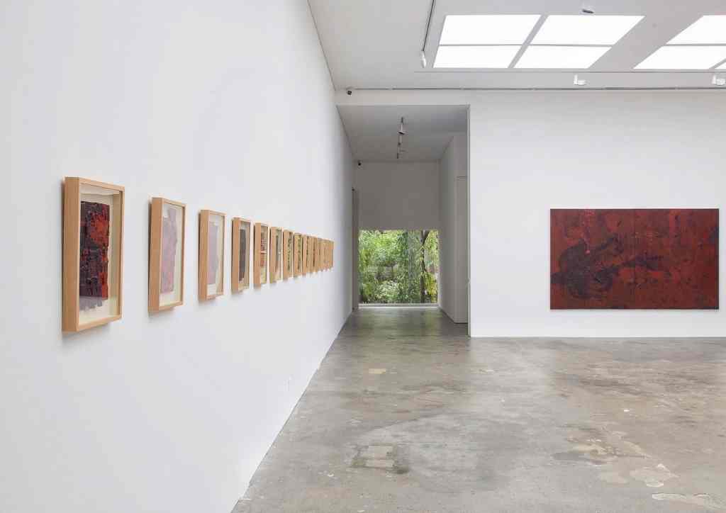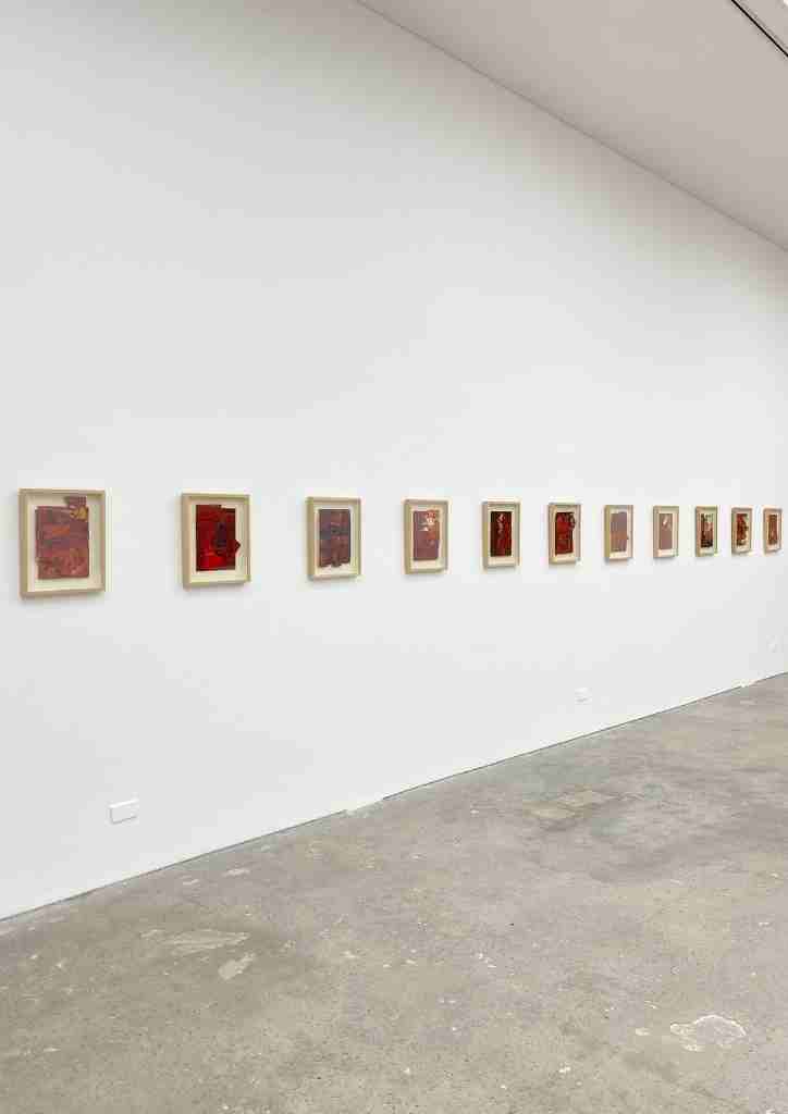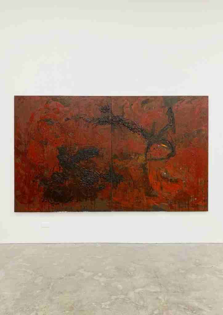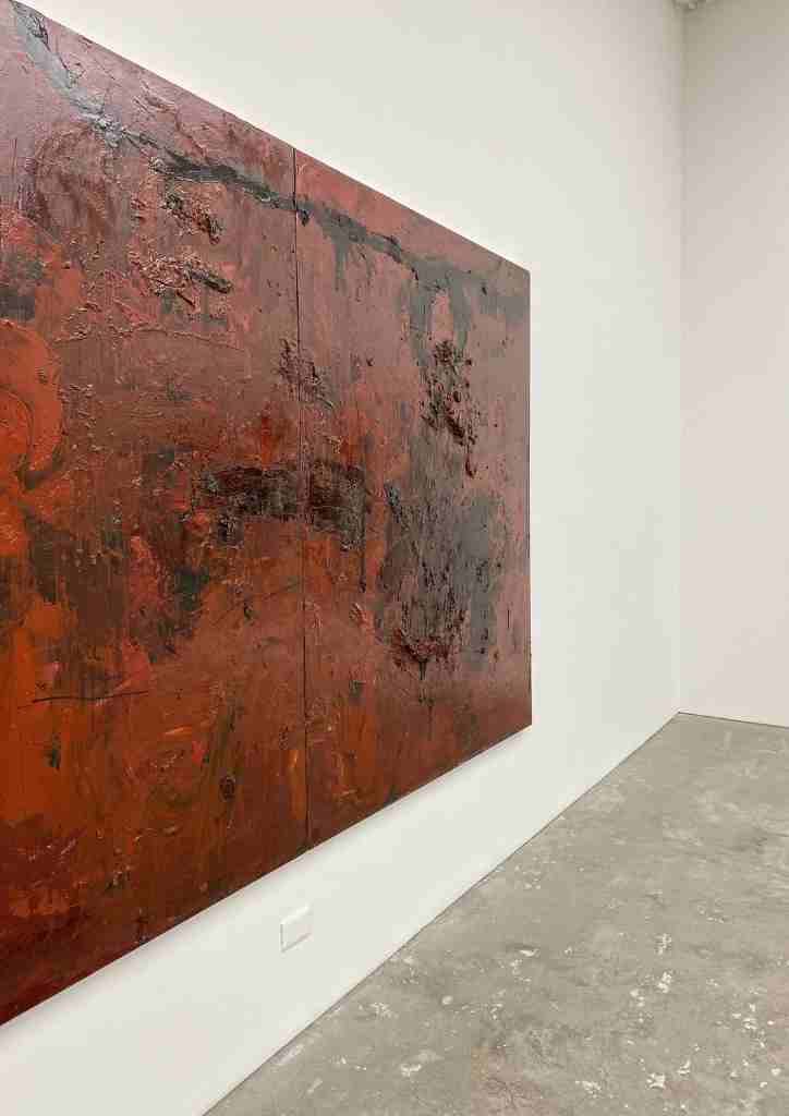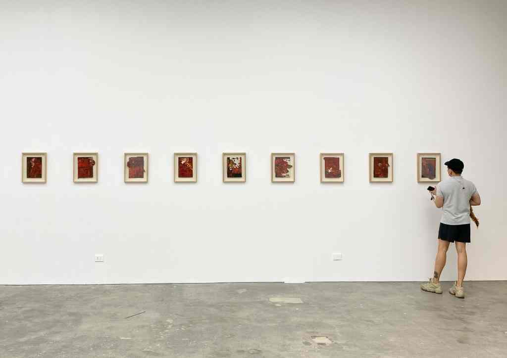 His works usually feature vast layers of white, gray, black, and other contrasting colors. This show can be considered an inceptive period of the highly regarded artist using red on his canvases. These current works, much like the title of the show, represent a state of uneasiness or anxiety, far from his works pre-pandemic which have a specific matte texture. The works presented have a glossy surface due to oil paints with linseed oil, which were the most readily available materials in a country with austere COVID-19 restrictions where he is based, Singapore.