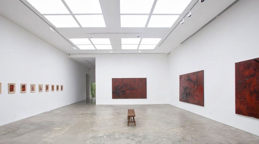 His works usually feature vast layers of white, gray, black, and other contrasting colors. This show can be considered an inceptive period of the highly regarded artist using red on his canvases. These current works, much like the title of the show, represent a state of uneasiness or anxiety, far from his works pre-pandemic which have a specific matte texture. The works presented have a glossy surface due to oil paints with linseed oil, which were the most readily available materials in a country with austere COVID-19 restrictions where he is based, Singapore.