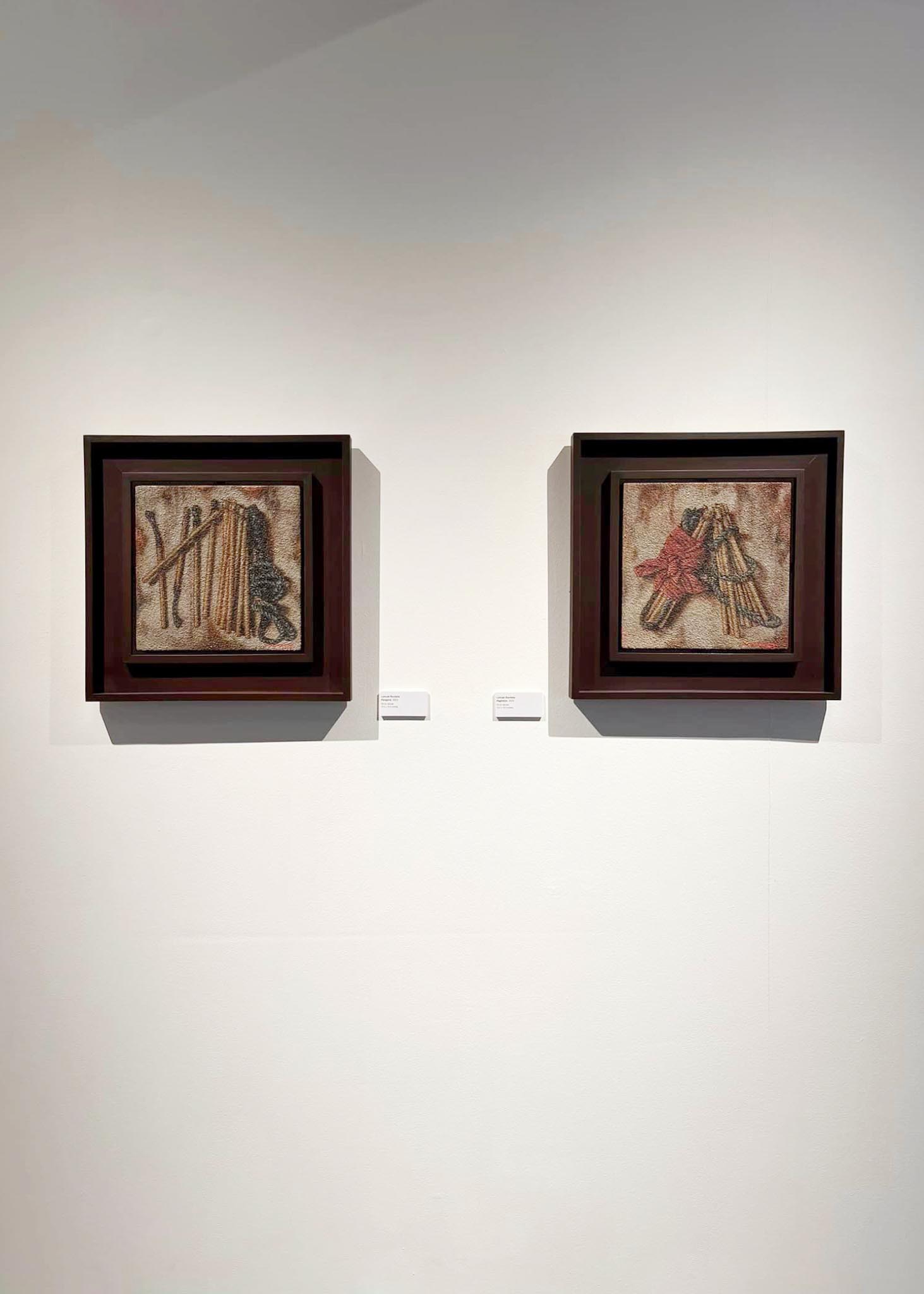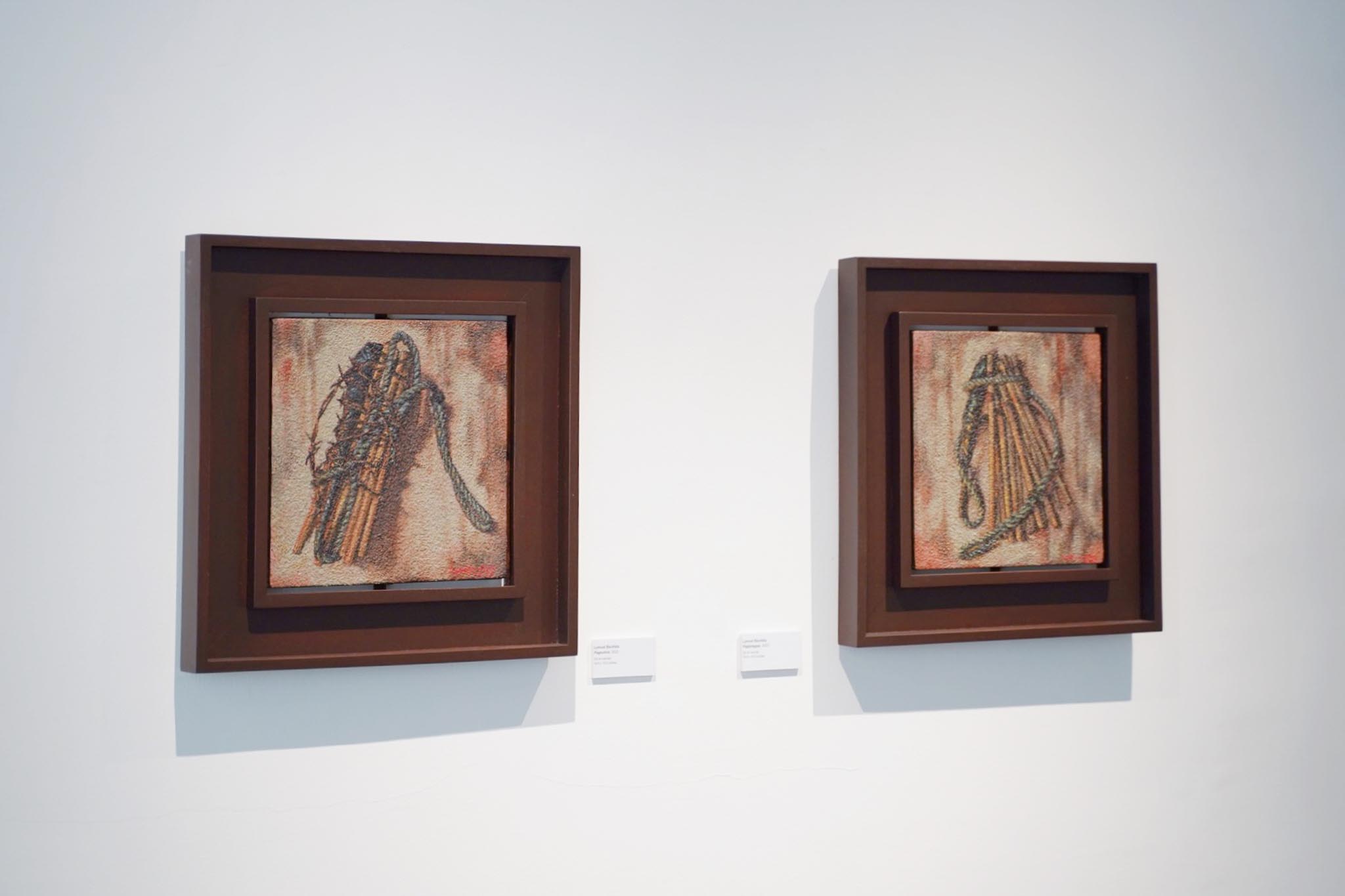 For his works titled “Paghilon,” “Pagtanggap,” “Pagsubok,” and “Pangaral,” the expended matchsticks are depicted as implements of flagellation, underscoring how seemingly volatile the sacrifices of the less fortunate can be. This concept of penance becomes a thought-provoking element of the exhibit, suggesting that, at times, devotion necessitates individuals to offer up their lives for a grander purpose, specifically, creating a domestic haven.