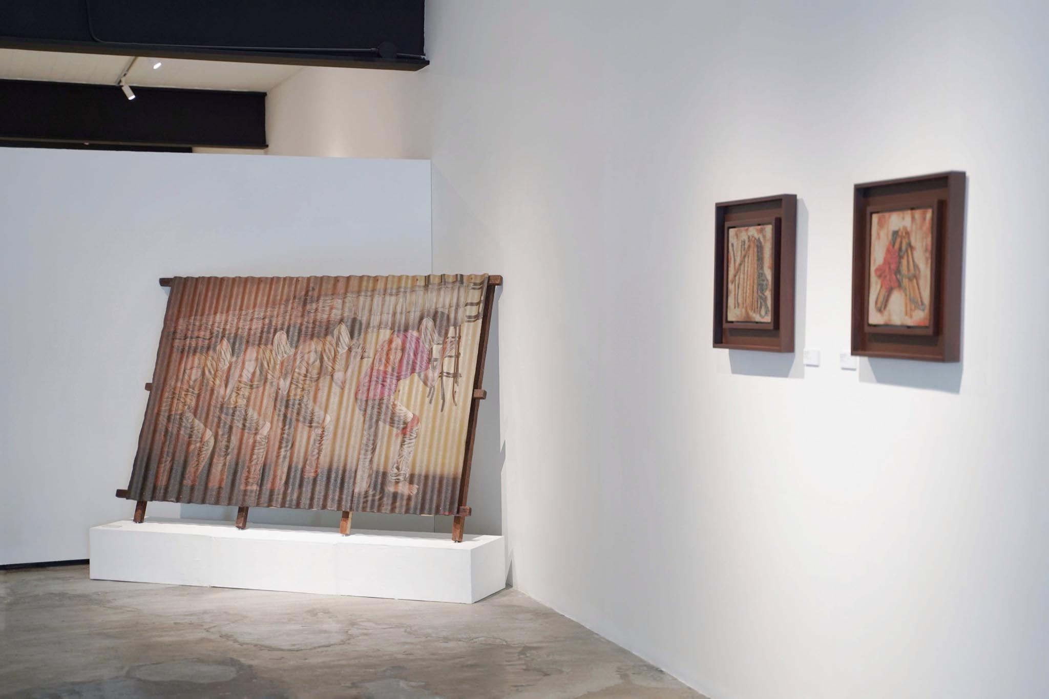 The notion of “devotion” takes on an additional dimension within the exhibition as it converges with religious symbolism. For example, in Lymuel’s main piece titled Madre de Pamilya, men bear the weighty burden of a beam or post instead of bearing a cross, symbolizing the challenges inherent in establishing a home. This creation is a homage to his mother’s dedication to raising them single-handedly after his father’s demise in 2013.