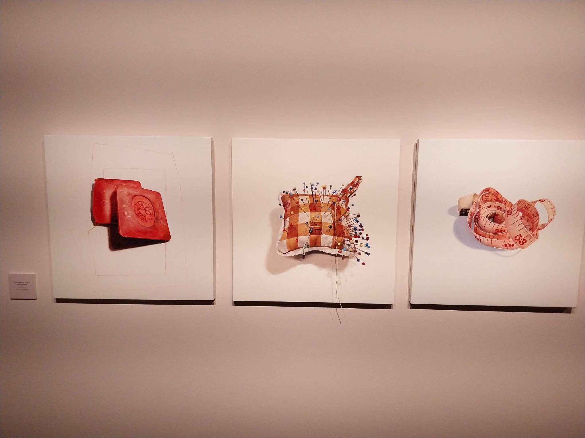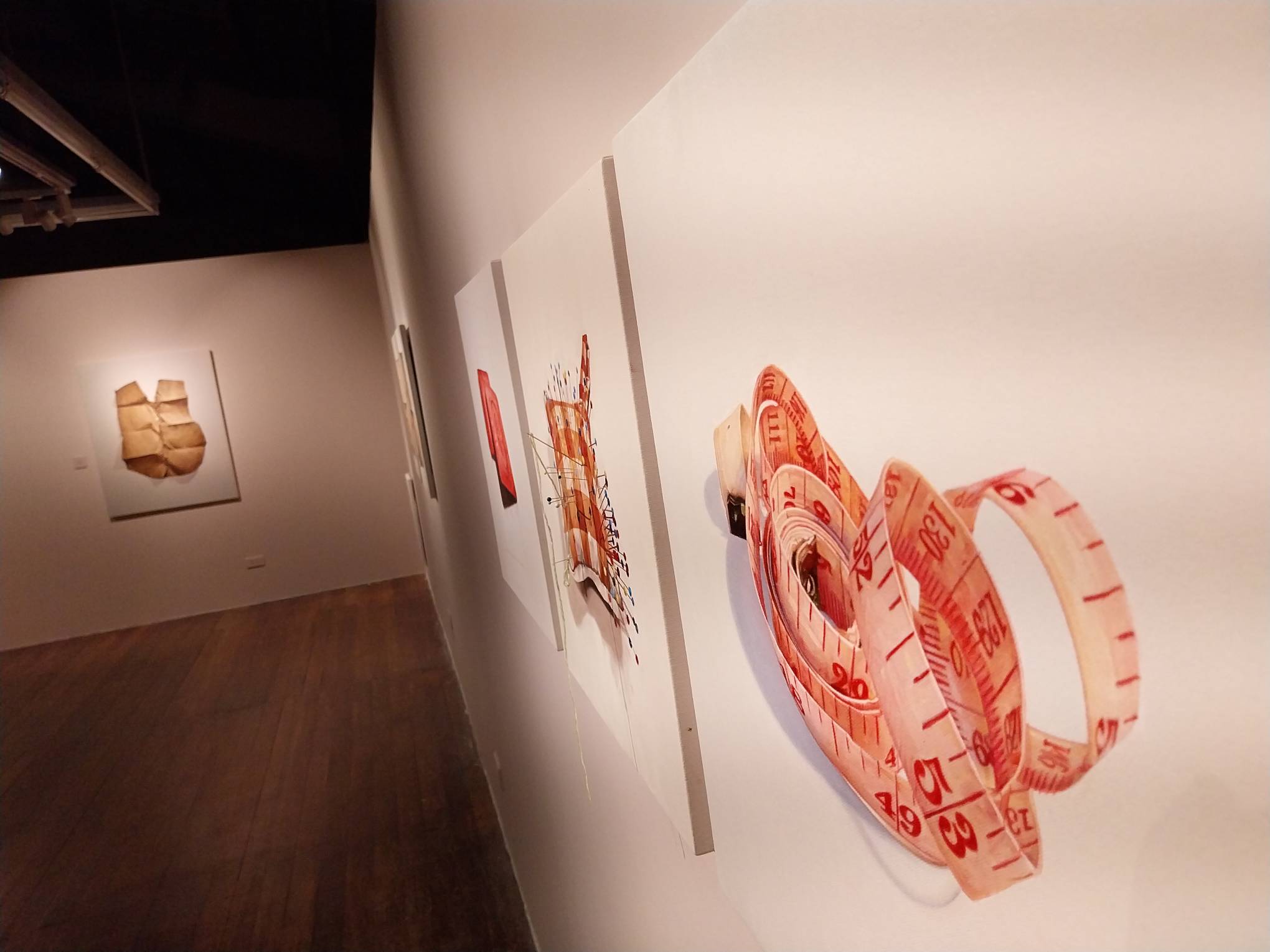 Finale Art File’s second exhibit for November is Garryloid Pomoy’s Painting Patterns. This exhibit fuses paintings of sewing materials with the sewing materials themselves, crafting an interesting mixed media exhibit that thrives on subtlety.