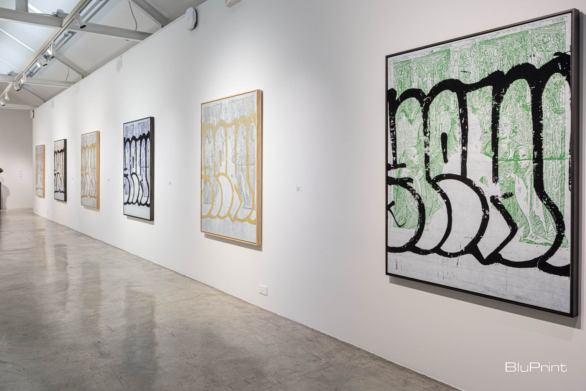 Graffiti in itself straddles the fine line of art, freedom of speech, and vandalism, so it makes total sense for Utarit to use in this body of work. The artist encountered graffiti during his stay in Naples and took photographs of them. Some he could not understand as he did not speak Italian.
