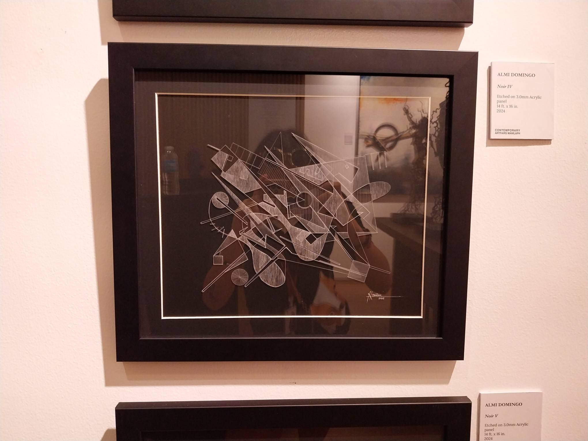 This is most prominent with Almi Domingo’s work. The monochrome works are both deeply abstract creations while still following the format of an architectural blueprint. There’s something compelling about the works, an explosion of shapes that looks like rooms and hallways and doors—almost dadaist in its push towards the strange.
