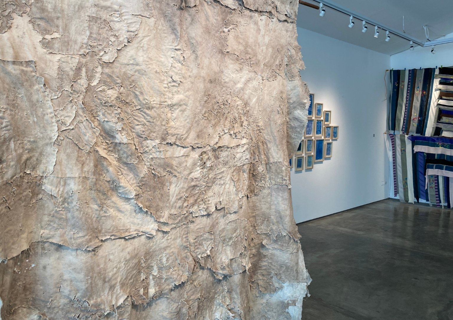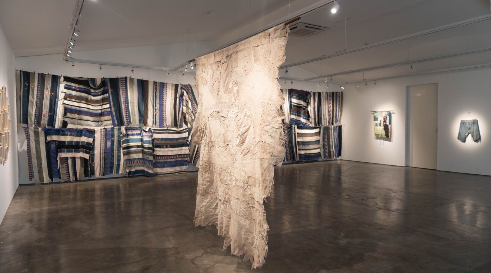 The show’s original concept came from a conversation with artist Winnie Go about her Shibori workshop in Japan. Shibori is a traditional technique of indigo dyeing. Sometimes applied to fabrics using a practice called Boro, which is the artistry or brilliance of mending. Instead of exhibiting works solely focusing on the outcome of Winnie’s workshop experience, they decided to include the works of Brisa Amir, Carl Jan Cruz, Christina Quisumbing Ramilo, and Maya Muñoz in the exhibition. These artists, in their own various ways, have been producing works with the essence of Boro, applied in a transcultural, contemporary context.