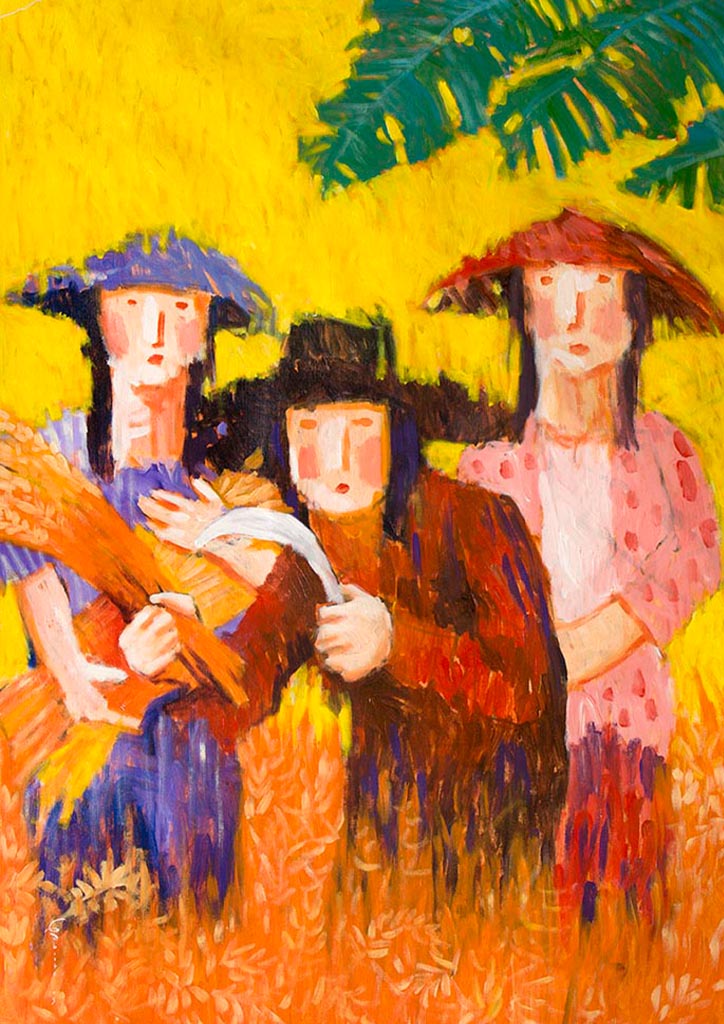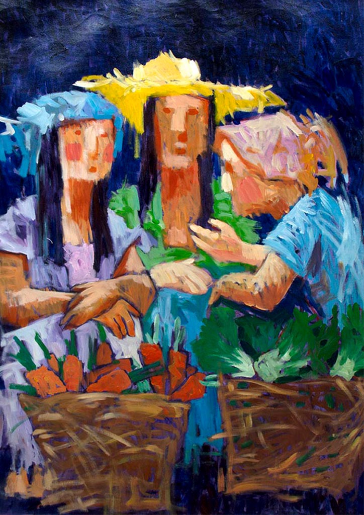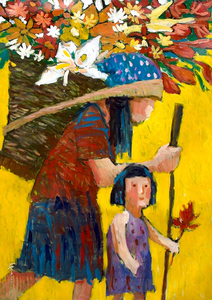 James Gabito’s artistic process is a co-creation between the medium and the imagination, with form evolving organically around nostalgic themes. Each painting consists of specific themes emanating from domestic settings and events from everyday life. James Gabito’s “Stories from Home” are acrylic paintings filled with vivid colors and strong brush movements that reflect his love for the local community with the works resonating with the inner essence of positive Filipino values such as love of family, solidarity, and friendship.