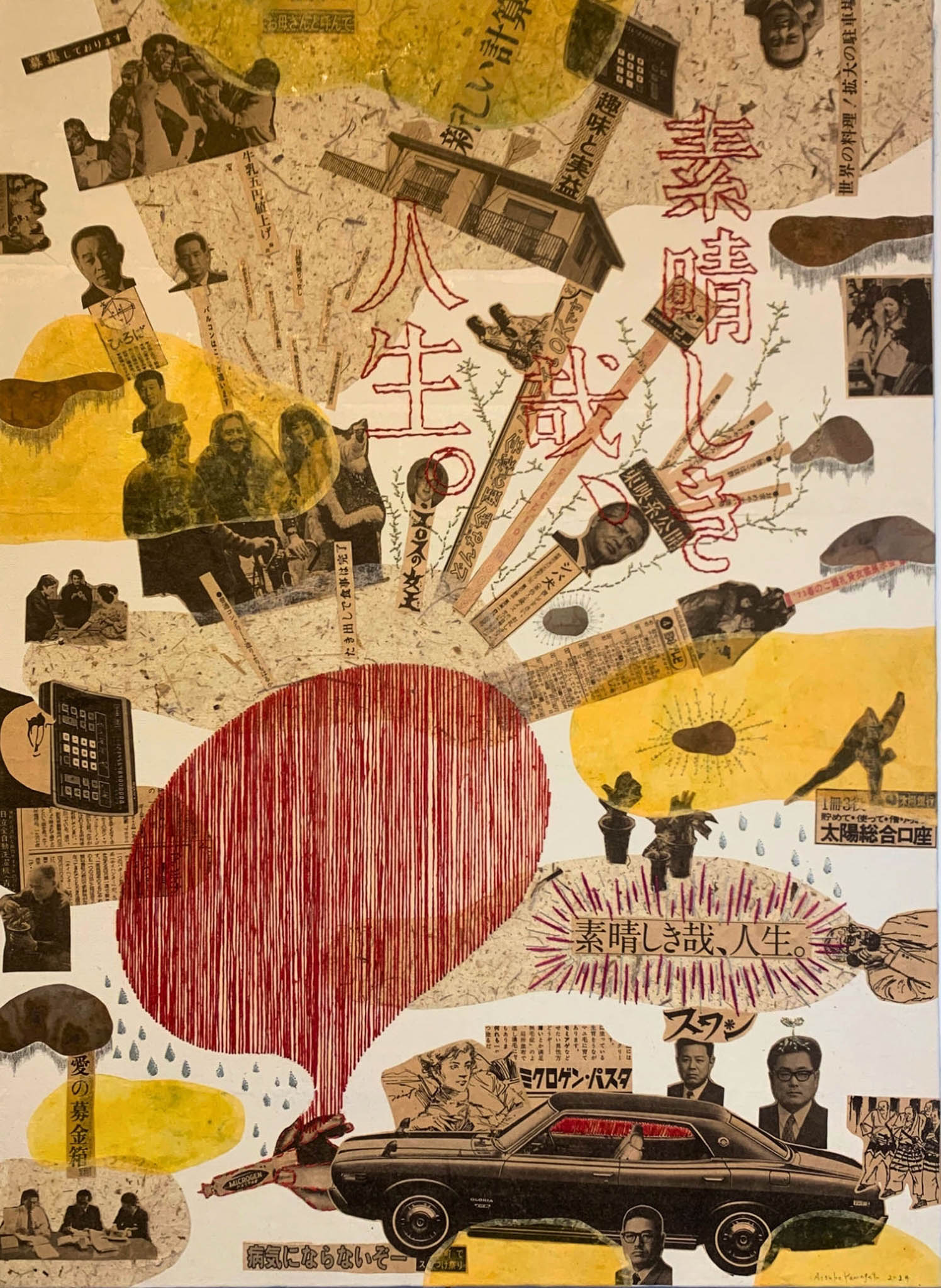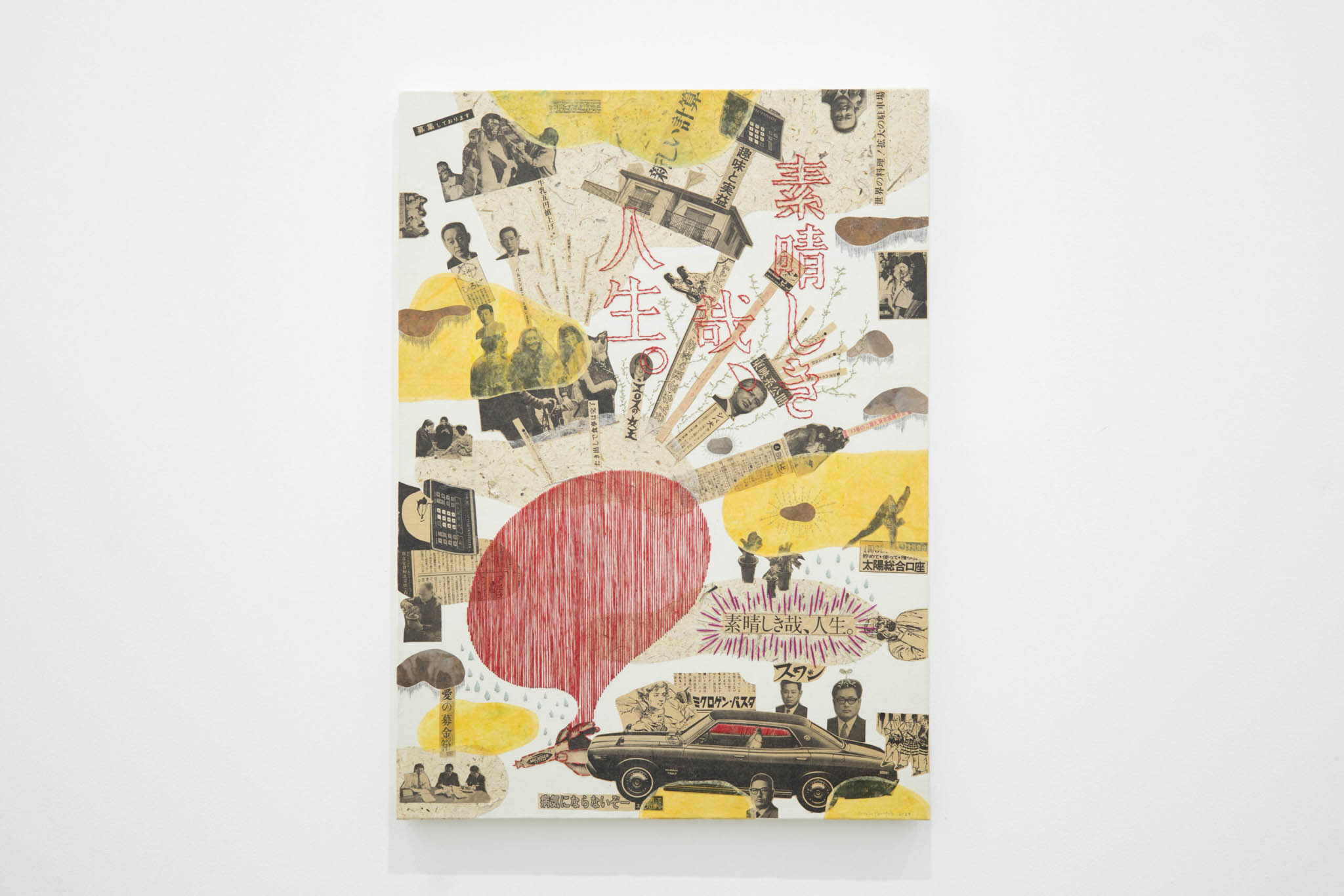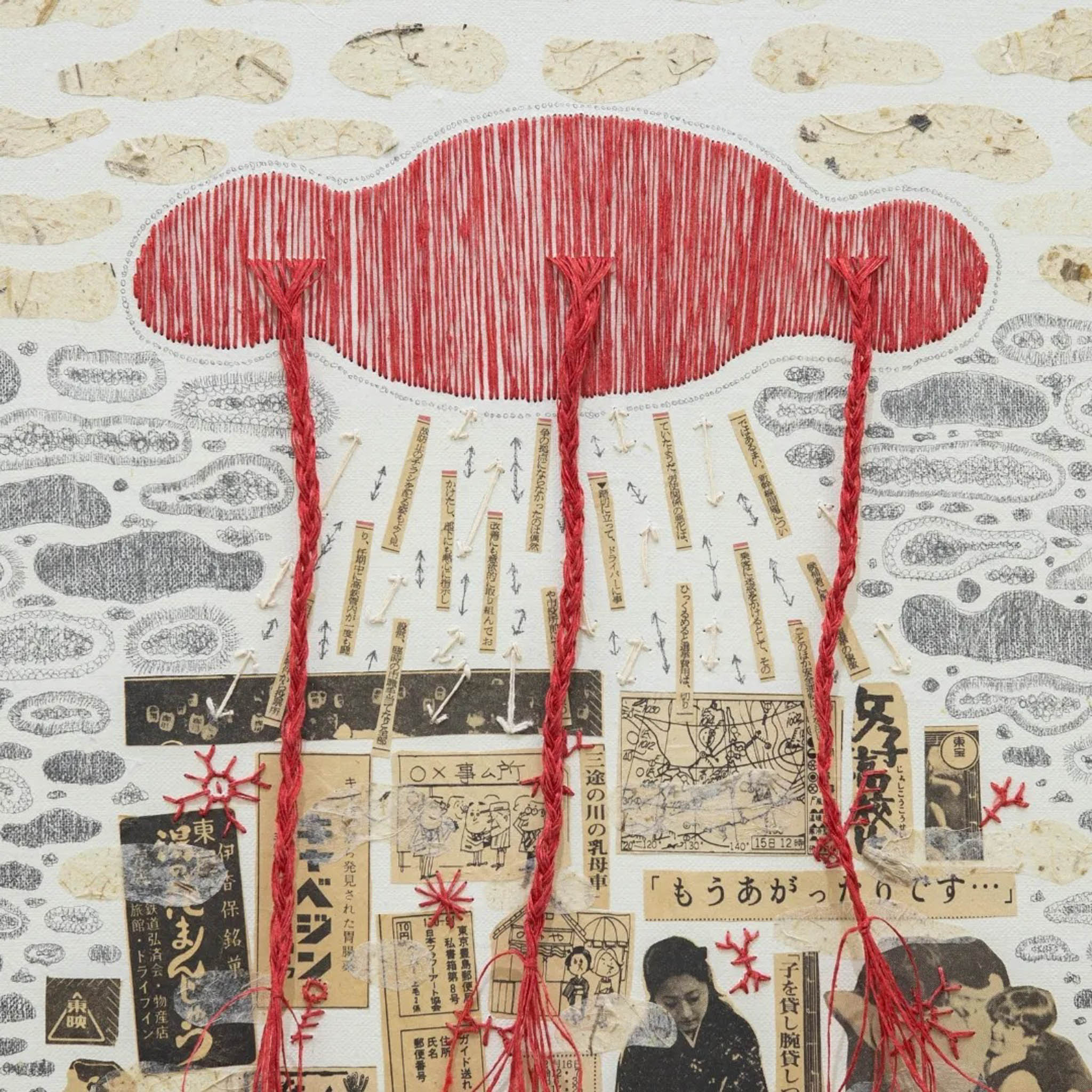 Immersing herself in the faded print, Yamagata unearthed poignant reminders of bygone eras – from whimsical advertisements extolling the joys of life to subtle echoes of societal shifts and cultural metamorphosis. Through her artistry, she delicately weaves together threads of memory and observation, inviting viewers to contemplate the passage of time and the enduring essence of human experience.