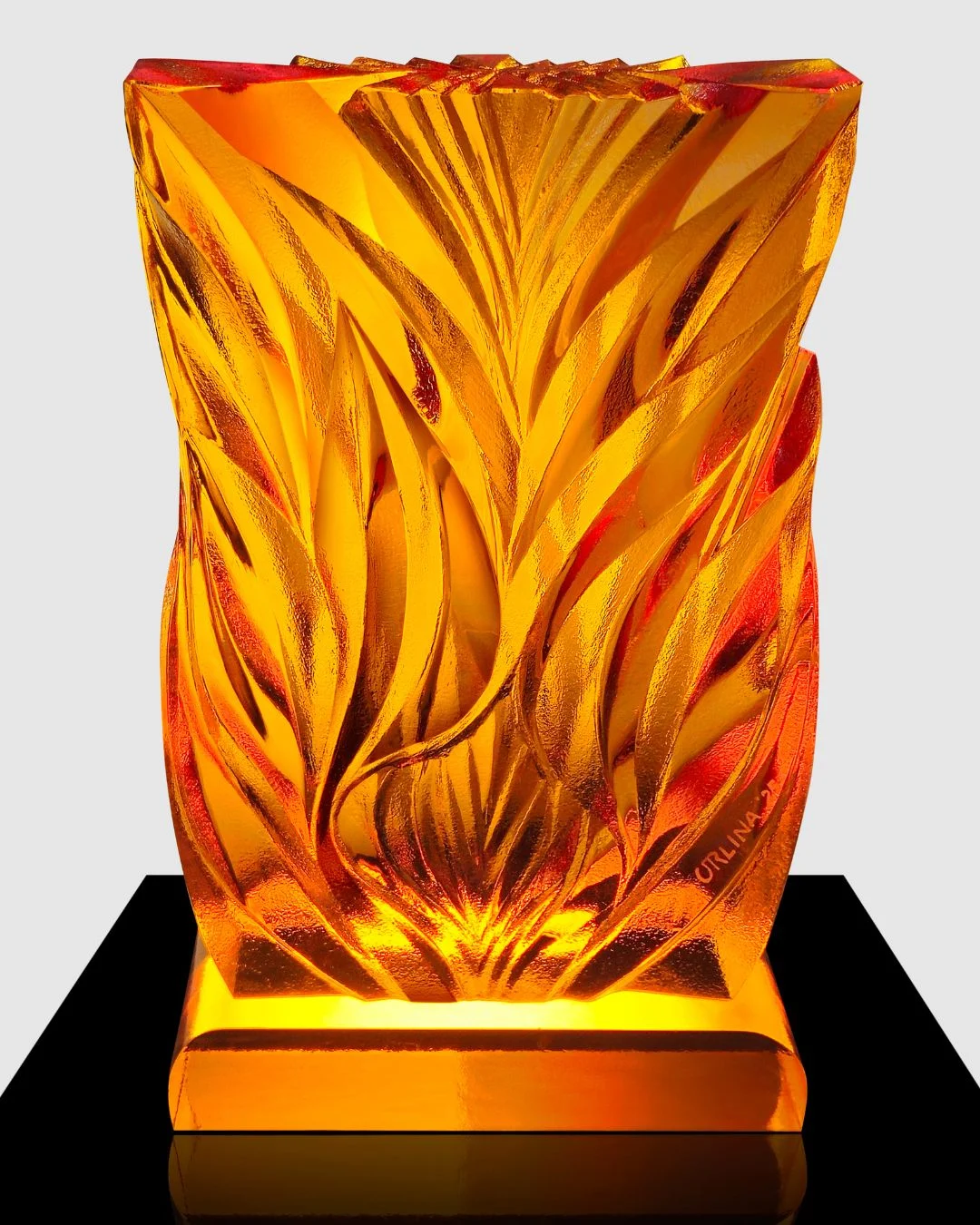 “Michael aims to experiment and find new ways to present his own unique form of glass sculpture,” his biography said. “He implements the use of texture with the transparent nature of the glass to bring out shapes and illusions that mesmerize the viewer.”