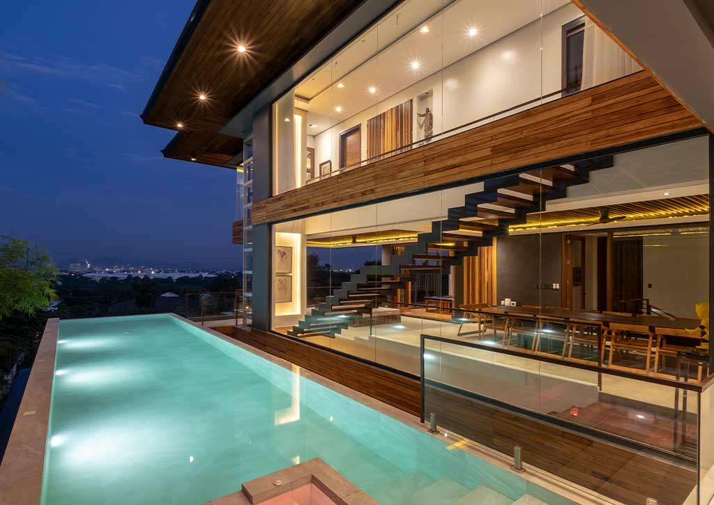The infinity pool is also located in the front for users to enjoy the view of the mountains. This location allows the water to overflow thus creating a waterfall that enhances relaxation in the living area below. On the third floor also is where all the bedrooms are located for security and privacy. And being the top level, this floor has the best view of the house. On the rear setback, the existing stone formations were retained and the landscape blended well with it, becoming the residents’ personal vegetation area.