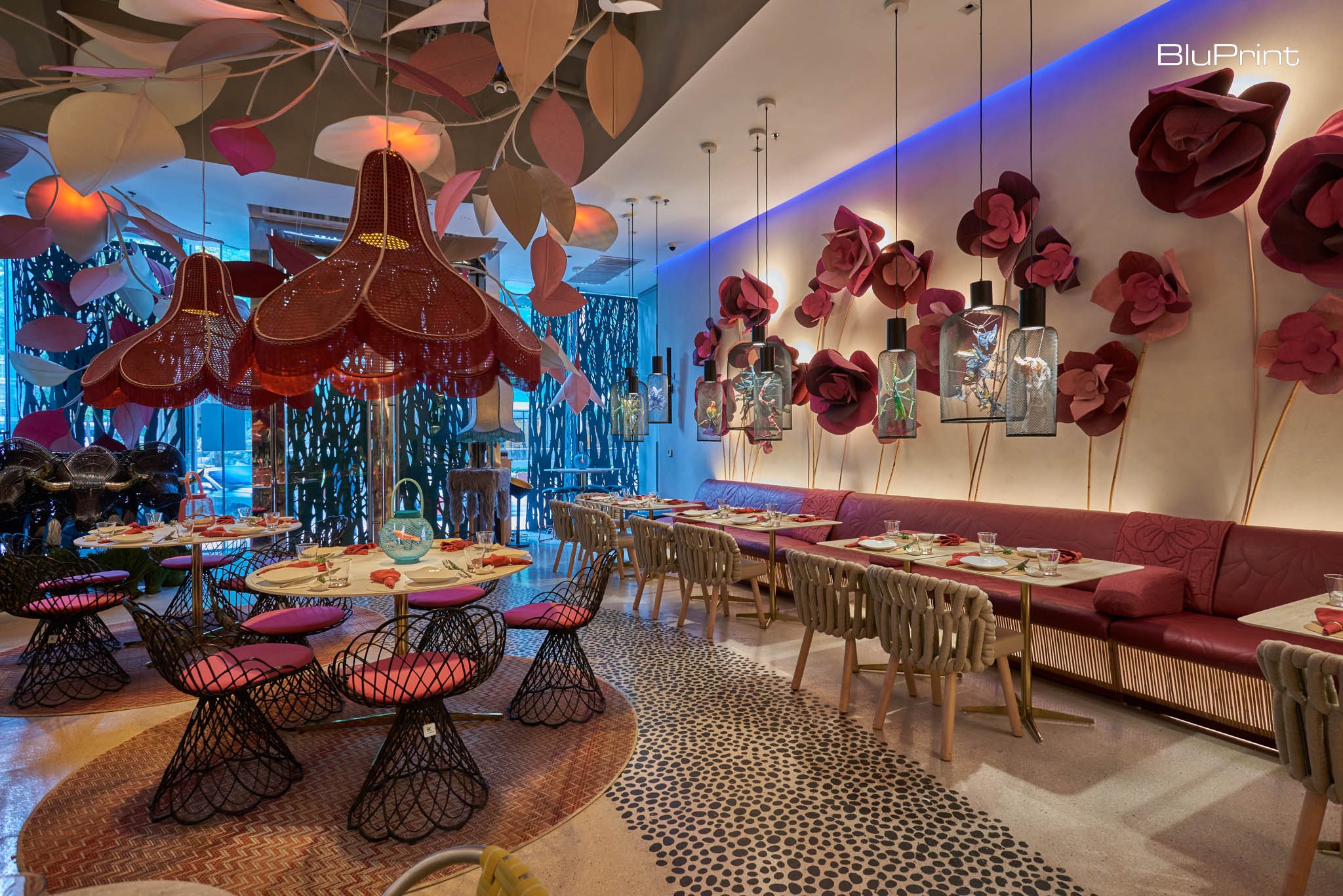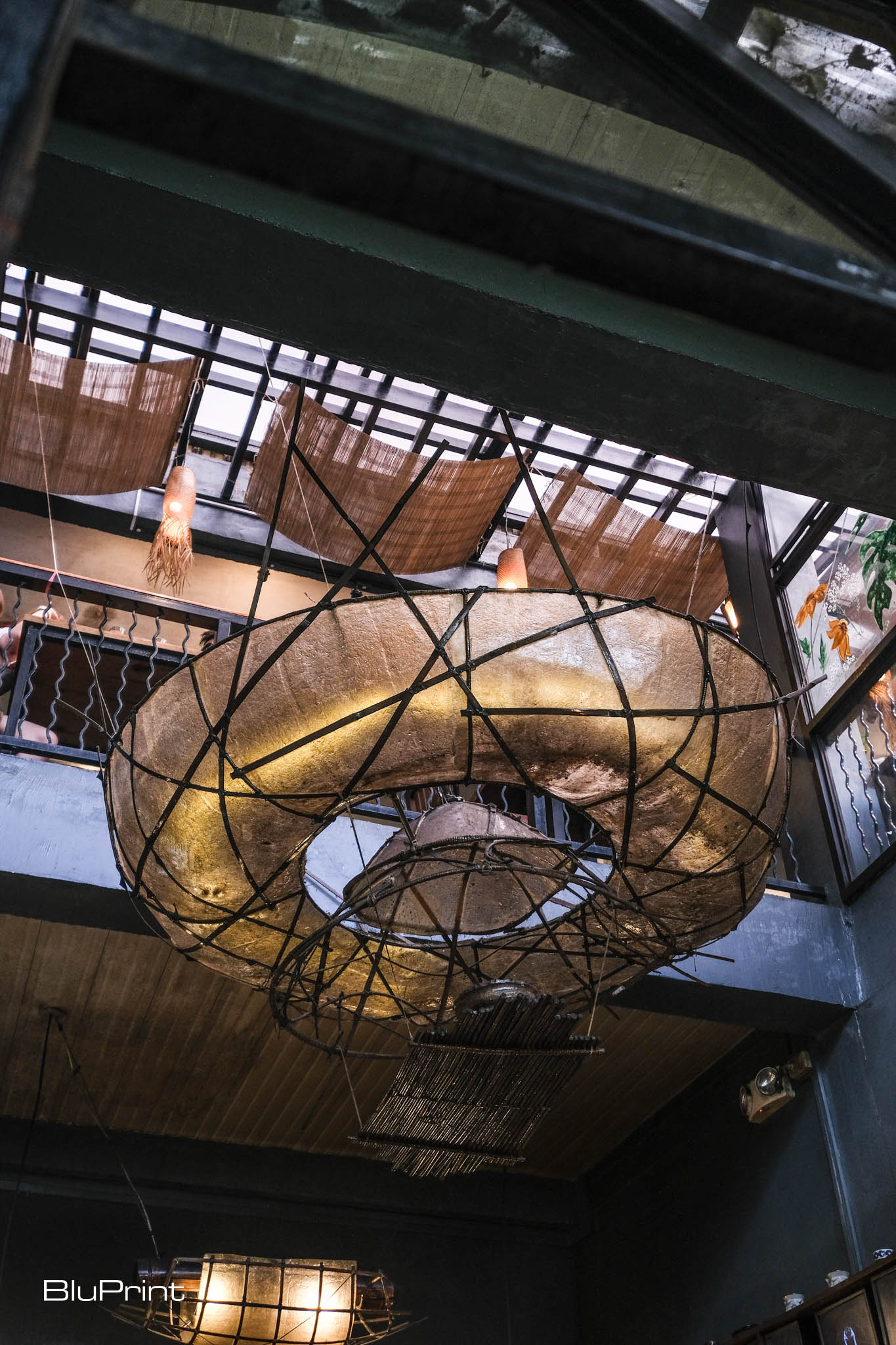 As Cobonpue’s own client, he enjoyed creative freedom, resulting in a space where every detail tells a story. The cafe features custom-made leaf chandeliers with changing LED colors, clam shell-like stools, woven dining chairs, and gigantic palm leaves and flowers.