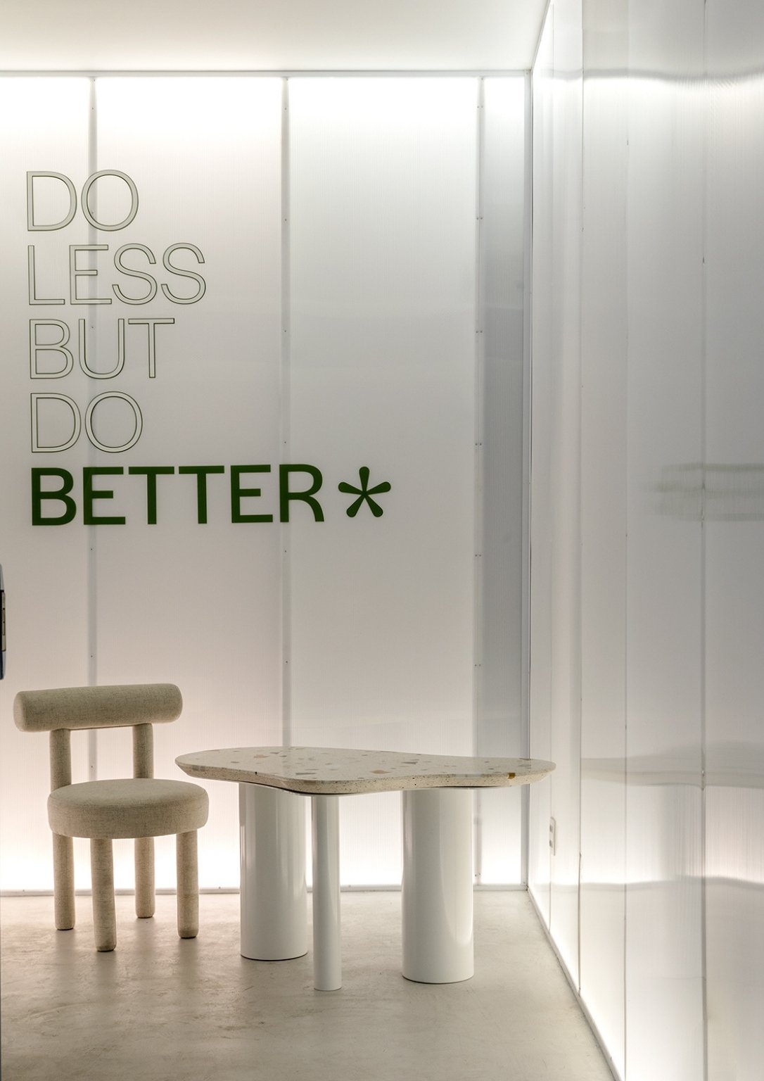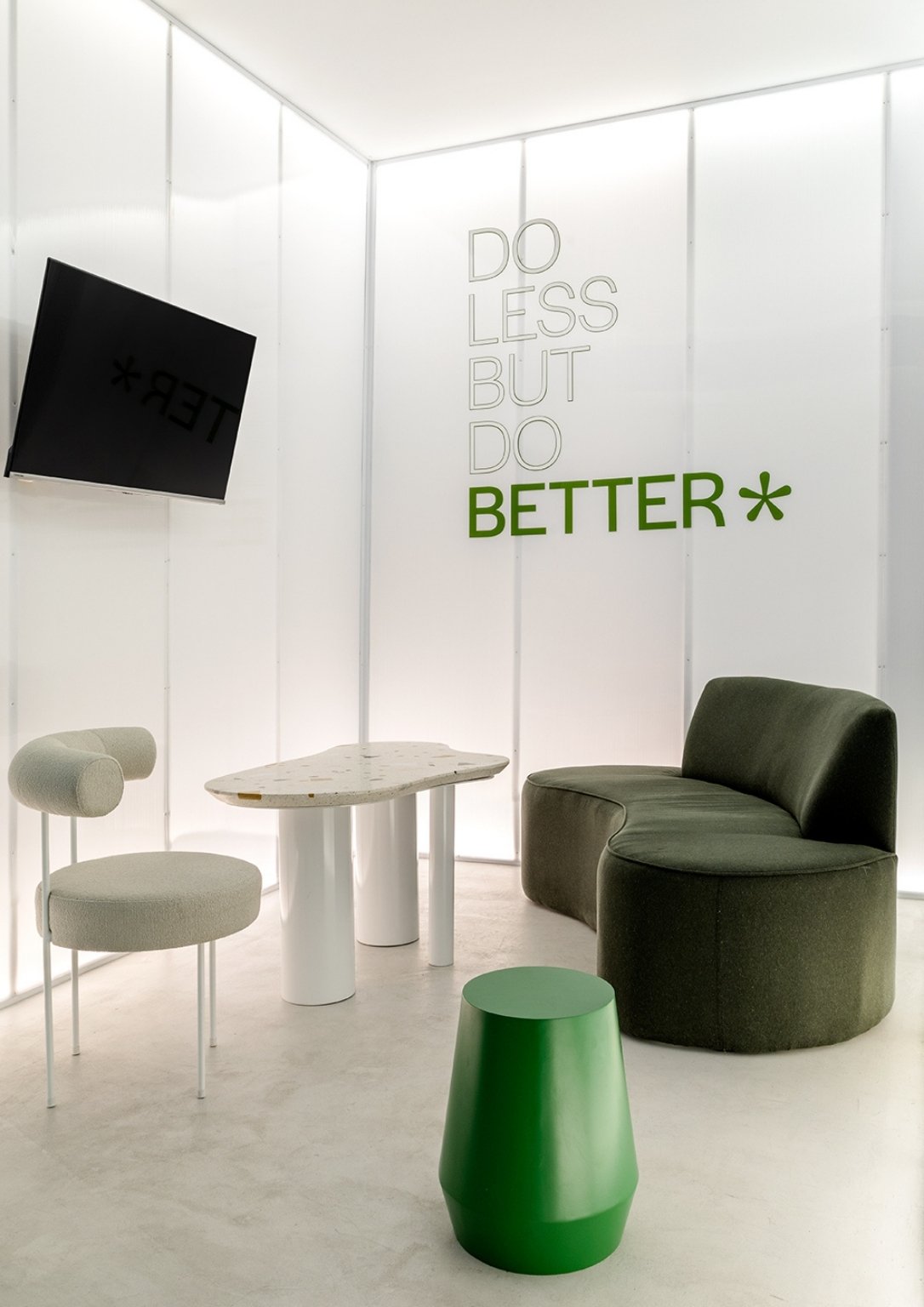 The studio explained they sought to escape the traditional, with minimalist references translated into the organic forms that constitute the concept of the project. They used light tones as a base to bring a greater breath to the space and serve as a blank canvas to incorporate the brand’s signature color green at some points within the project.