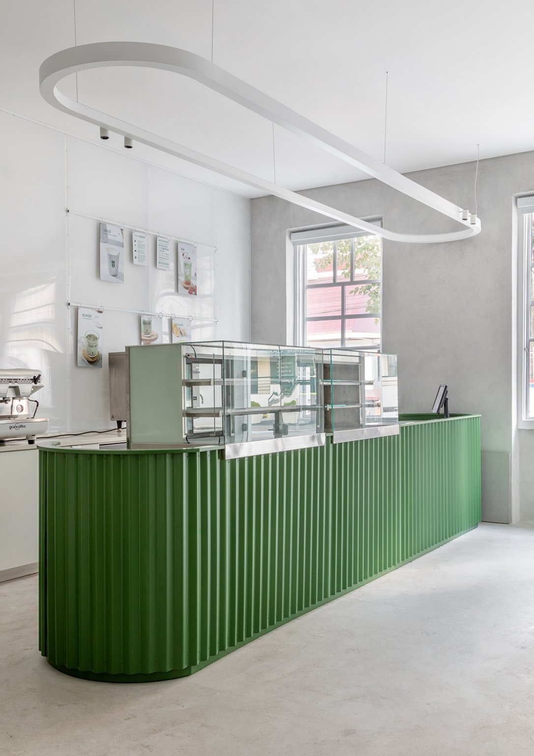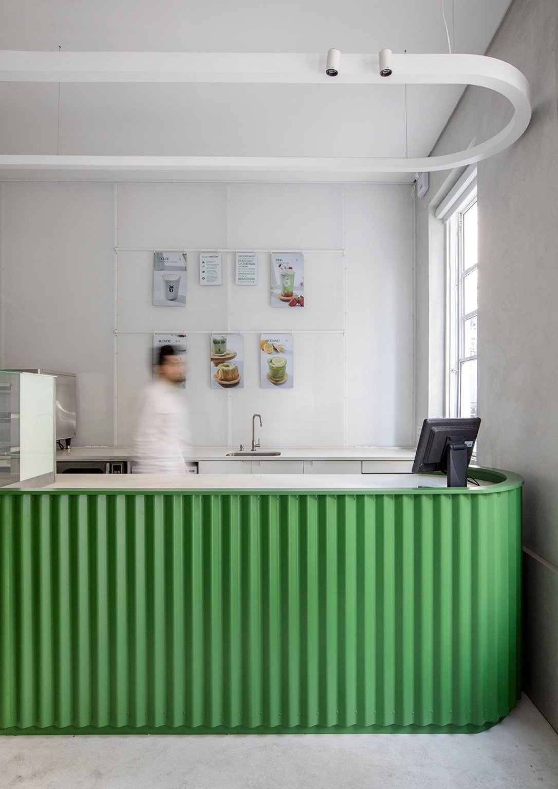 A Pop of Green: This Matcha Place Offers Minimalist Interiors with Unique Personality