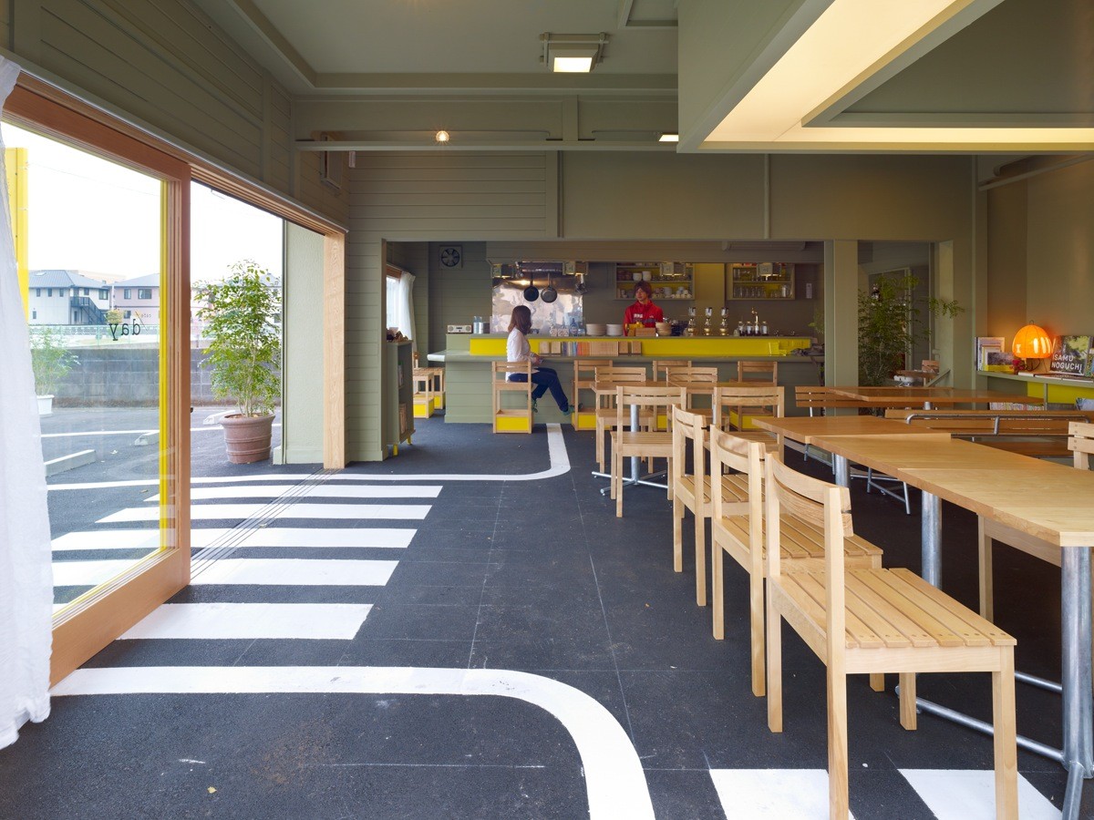 The Cafe Day features a unique openness towards the surrounding urban fabric. The renovation removes previous sections of interior walls that further connects the interior with the outdoor. Because of this, the architects can blend in road elements into the heart of the design.
