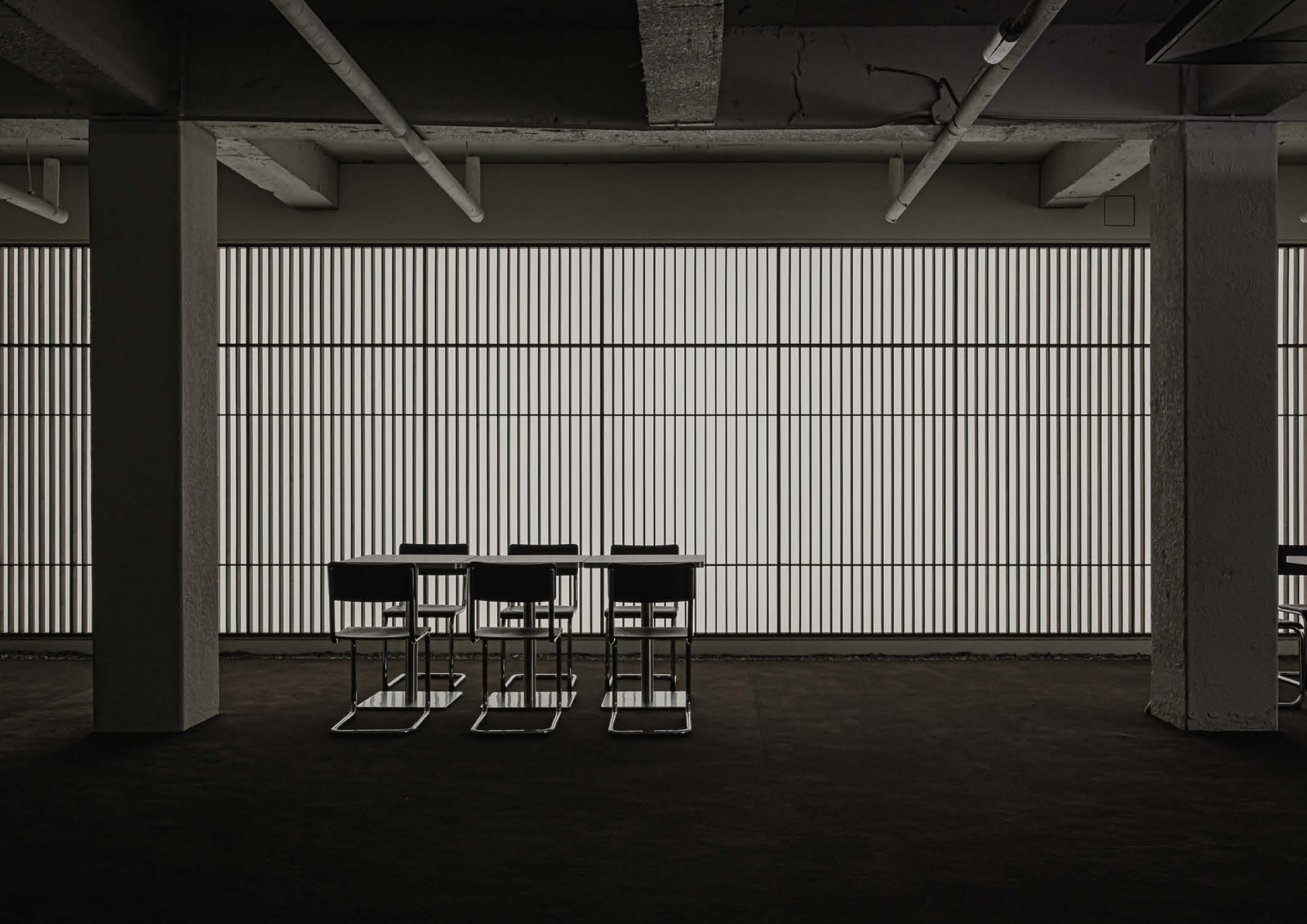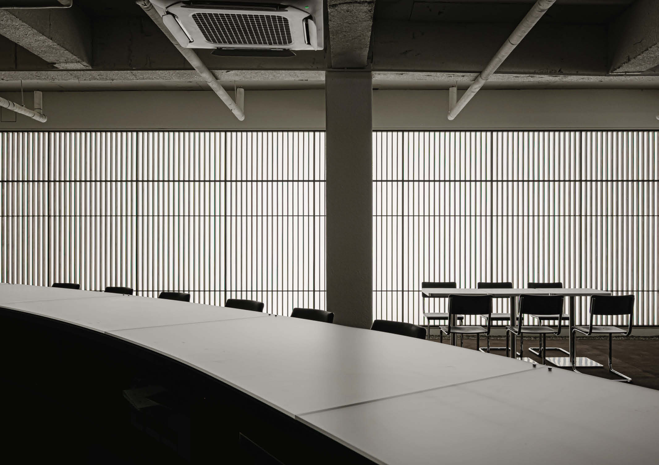 The architect blurred the internal and external boundaries by replacing the exterior wall of the building with glass. It was set to sit facing the mirror installed on the exterior wall which allows visitors of the cafe see the entire room through the mirror while sitting in one direction.